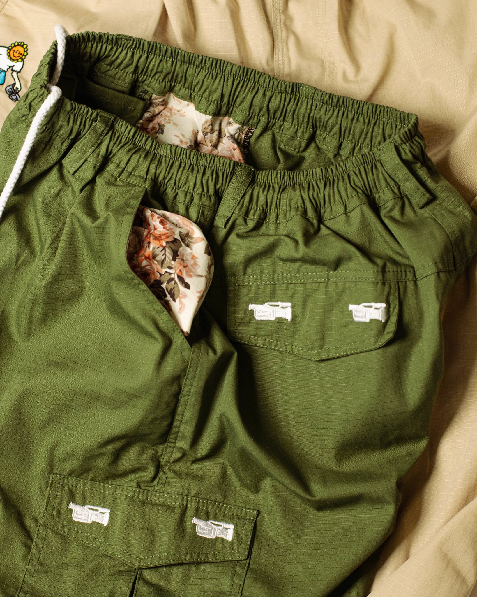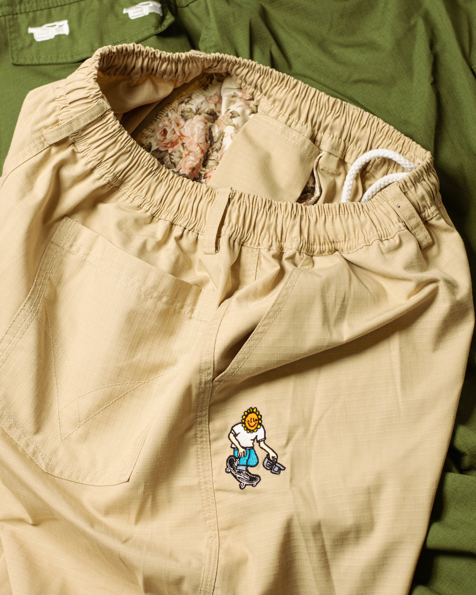 Ryan can be seen sporting the Beige Ripstop Pant, featuring the Sunflower Filmer embroidery. Chelsea is wearing the Olive Ripstop Cargo Pant, which features VX1 embroidery, adjustable elastic around the ankles, and more utility pockets with snappy buttons.