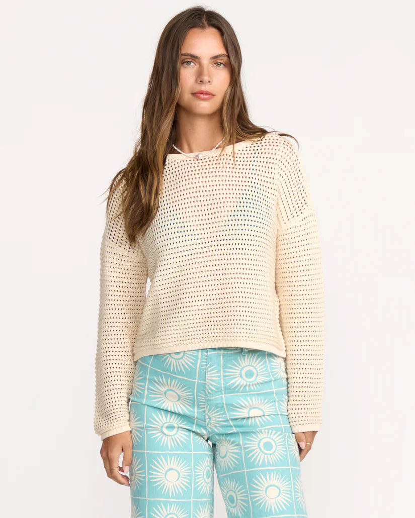 The Billabong Daybreak Sweater in Whitecap blends laid-back comfort with soft structure. Made from 100% cotton, it features a relaxed fit, wide neckline, and long sleeves for effortless layering. A subtle metal logo plate finishes the look with a touch of detail.