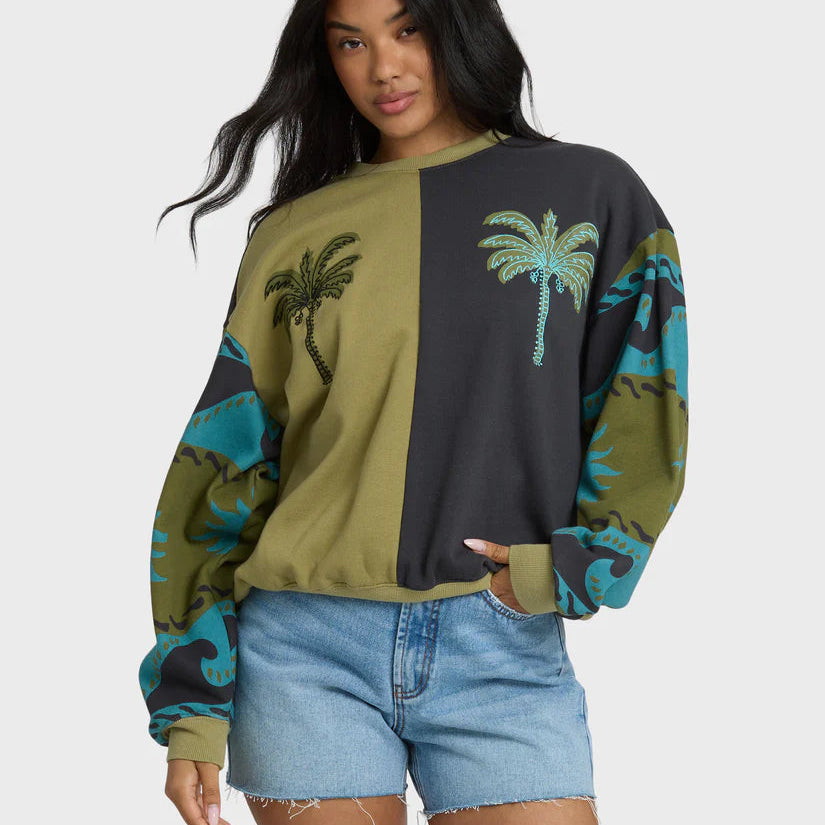 Billabong Split Palm Kendal Crewneck Sweatshirt in Cedar brings relaxed comfort with a bold, color-blocked look. The soft brushed fleece feel pairs perfectly with the elevated graphic finish for an easy everyday layer. A laid-back pullover built for off-duty style and all-season wear.
