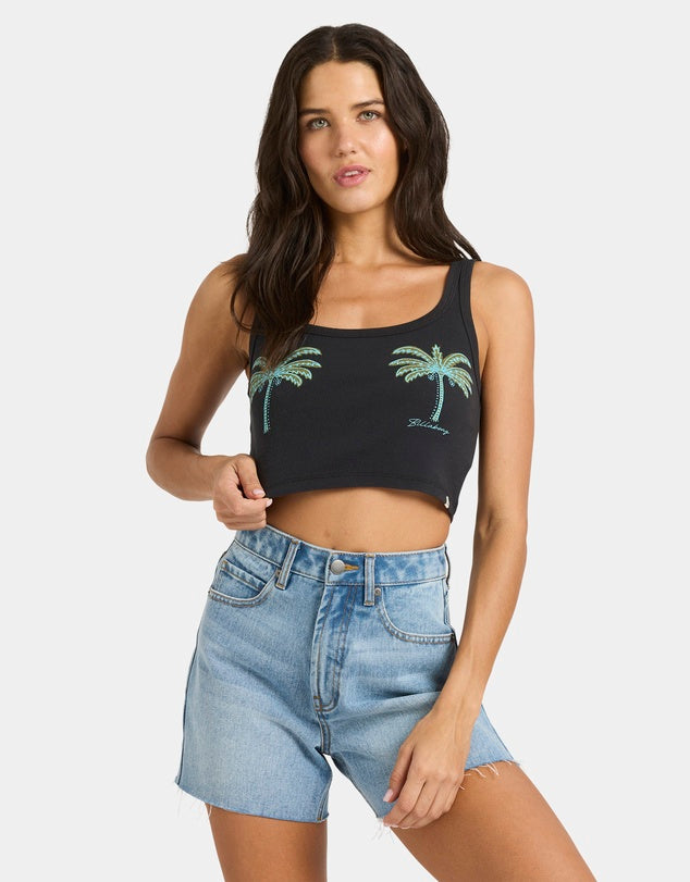 The Billabong Vacation Soil Tank is a cropped tank top with a snug fit and scoop neck. Features soft-hand screenprint graphics and garment-washed finish for incredible softness and a lived-in feel. Made from 100% cotton for all-day comfort.
