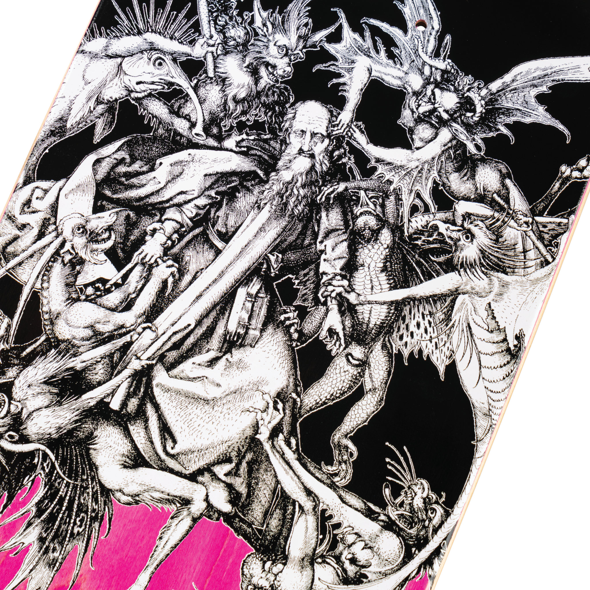 Welcome Nick Garcia Spear on Son of Boline 8.8 is the pro model deck for Nick Garcia, featuring teal stain with transparent Prism foil and silver foil details in the art. It measures 8.8″ × 32.5″ with a 14.5″ wheelbase on the Son of Boline shape. Traditional construction for street and park skating.