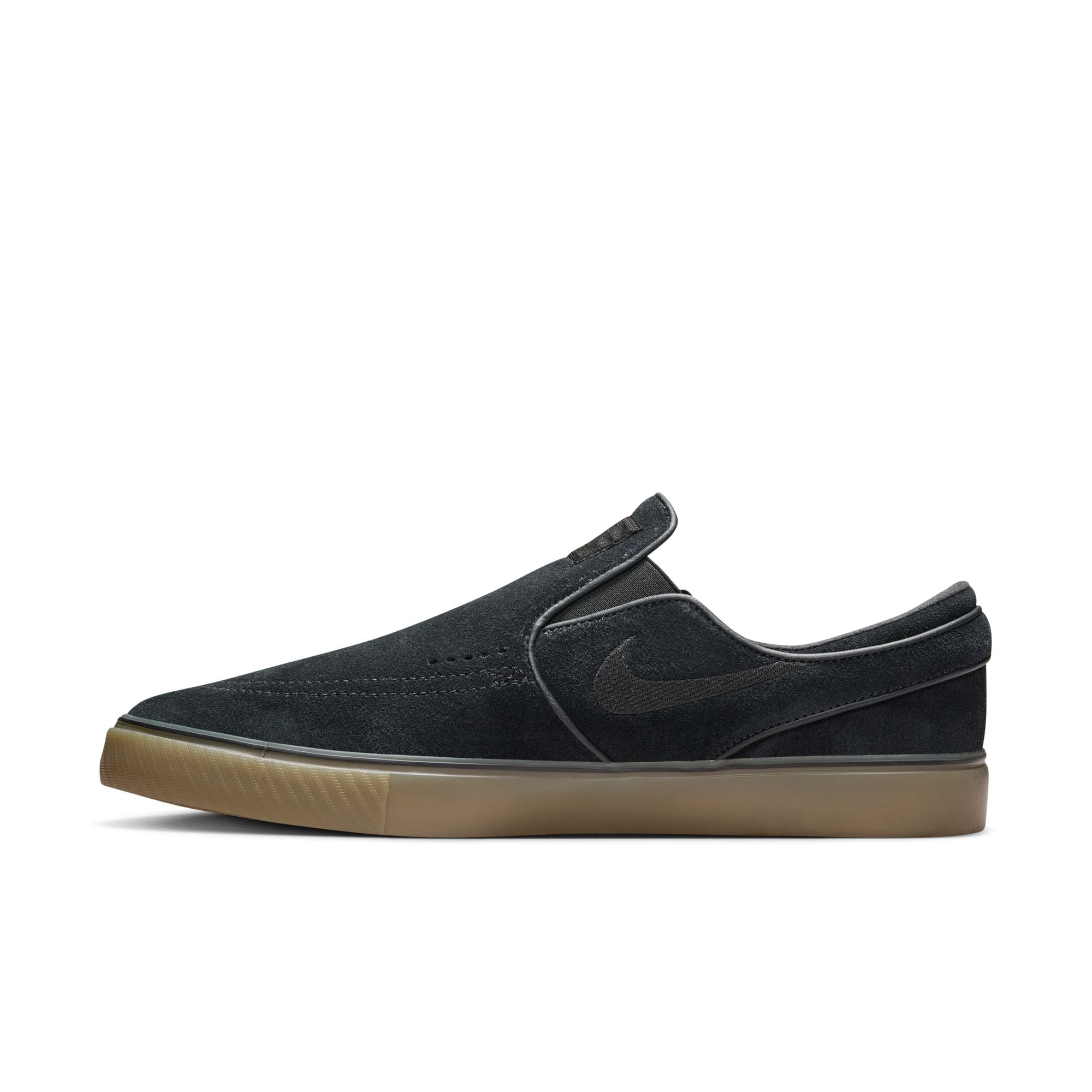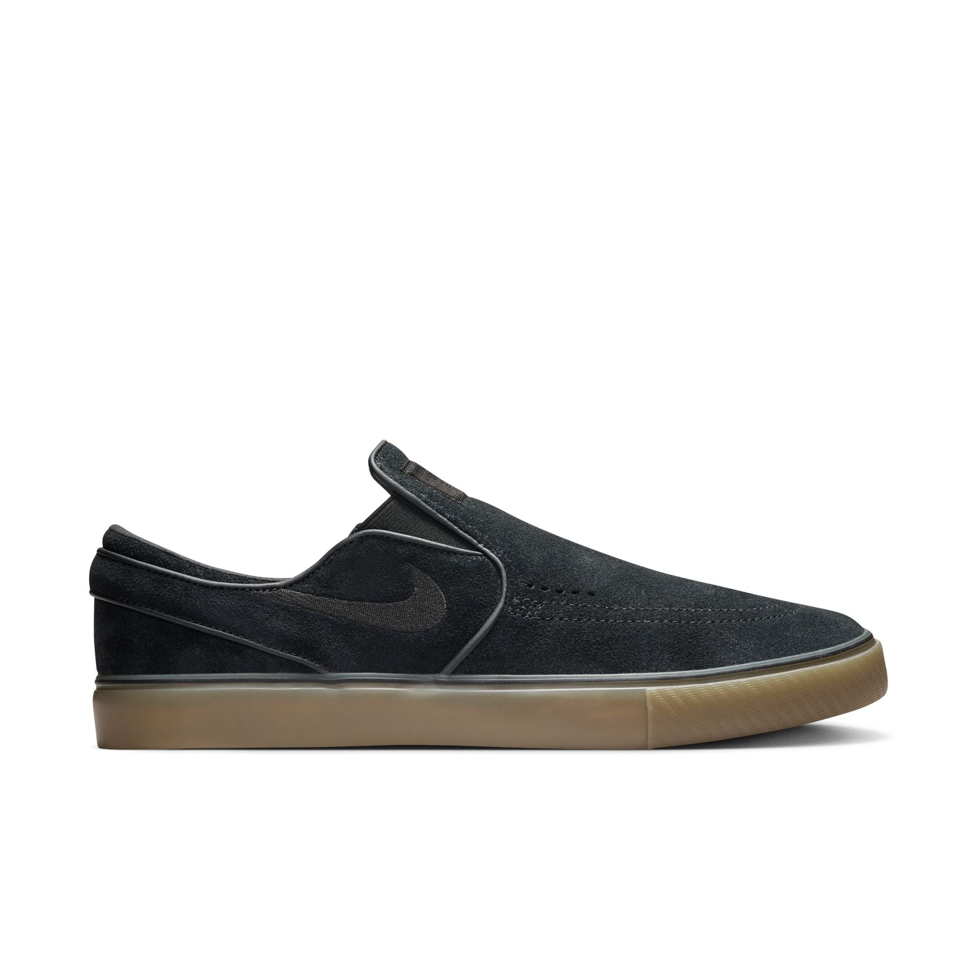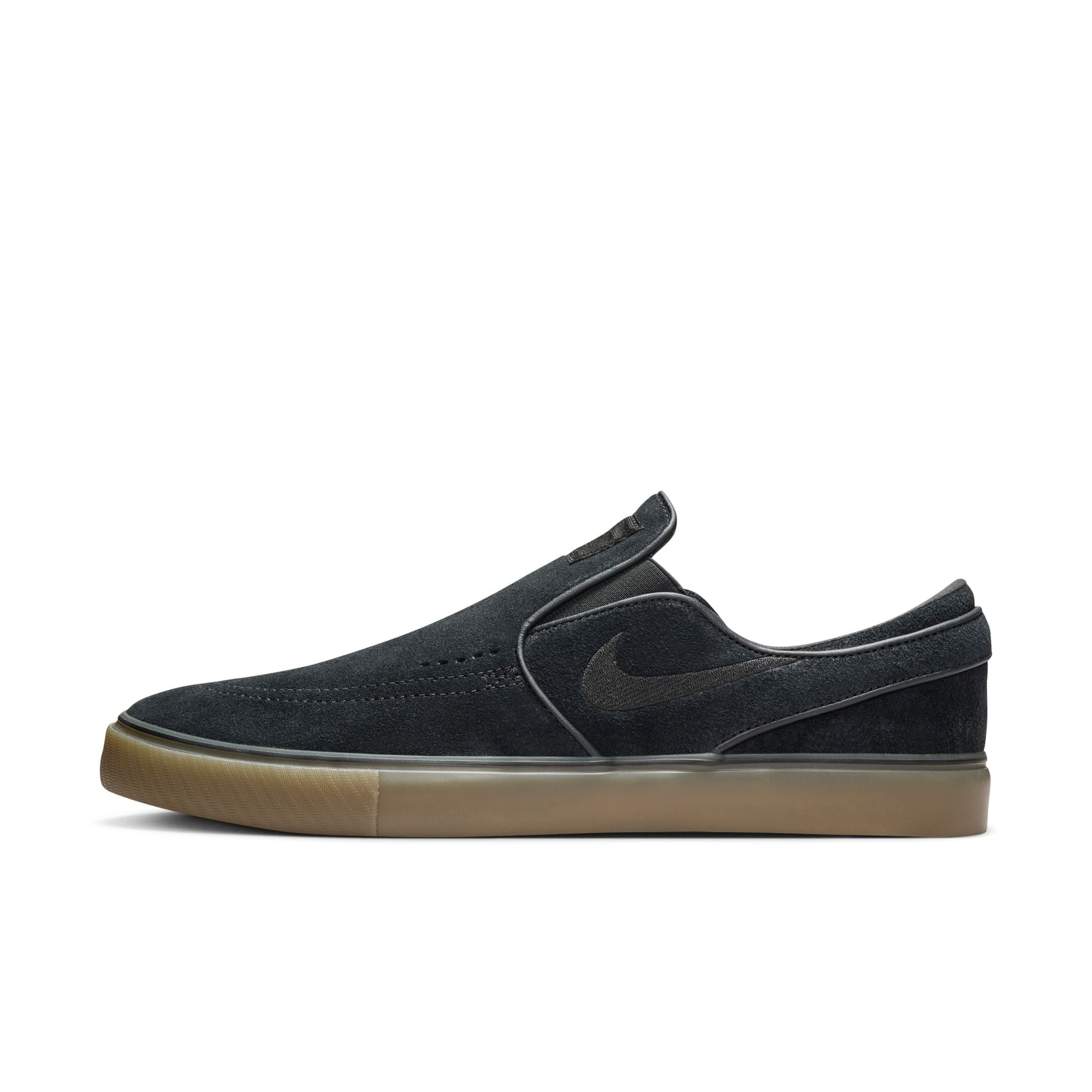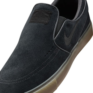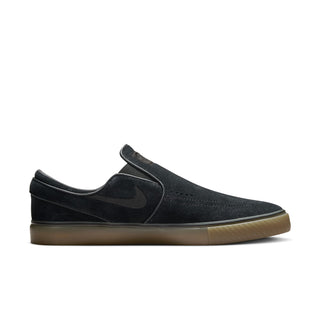 The Nike SB Janoski+ Slip in Black/Gum refines the iconic silhouette with a lace-free design and updated fit. Featuring a soft suede upper, Zoom Air cushioning, and vulcanized construction, this version delivers flexibility, board feel, and low-profile performance.