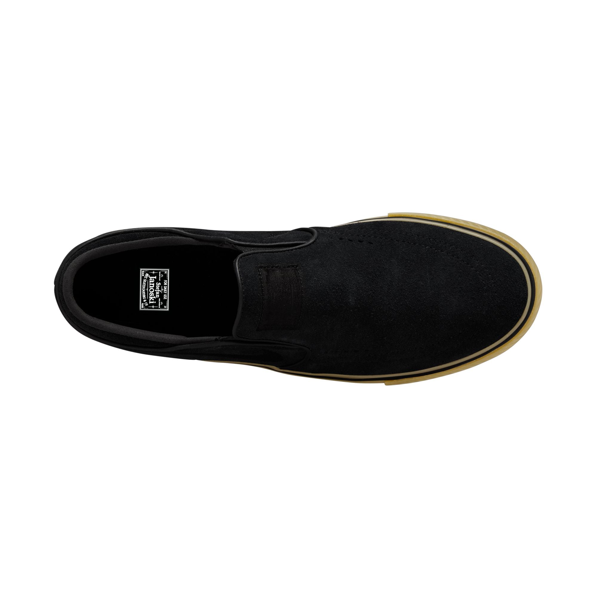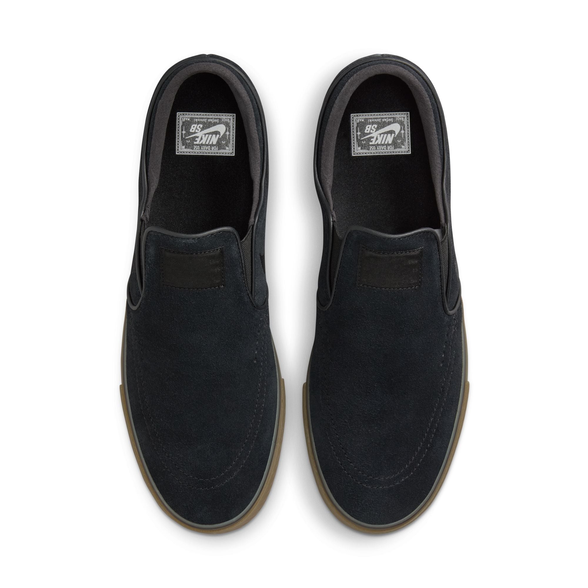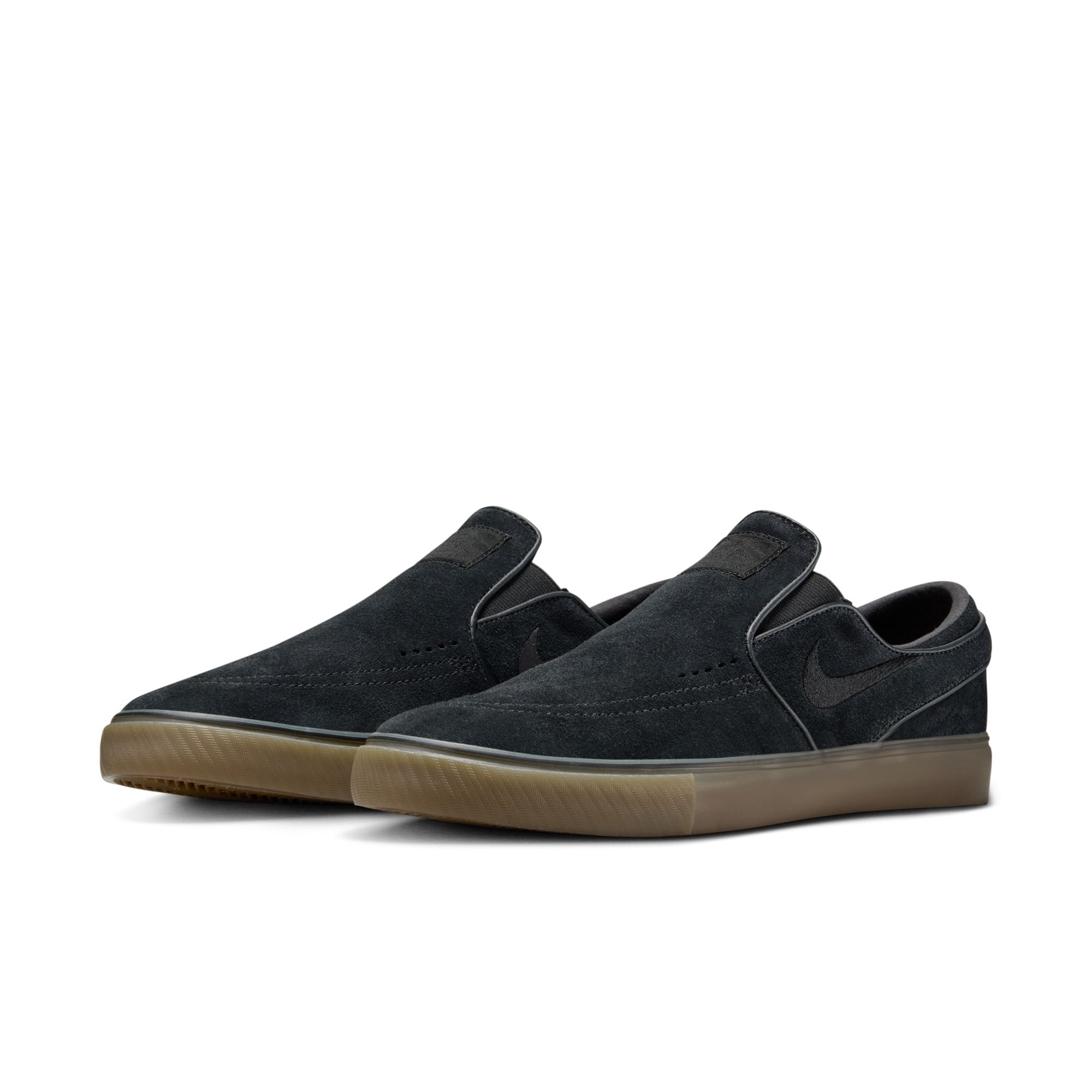 The Nike SB Janoski+ Slip in Black/Gum refines the iconic silhouette with a lace-free design and updated fit. Featuring a soft suede upper, Zoom Air cushioning, and vulcanized construction, this version delivers flexibility, board feel, and low-profile performance.