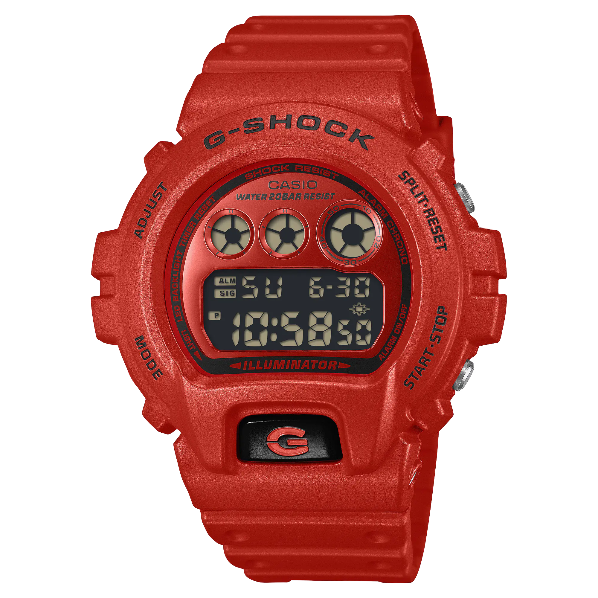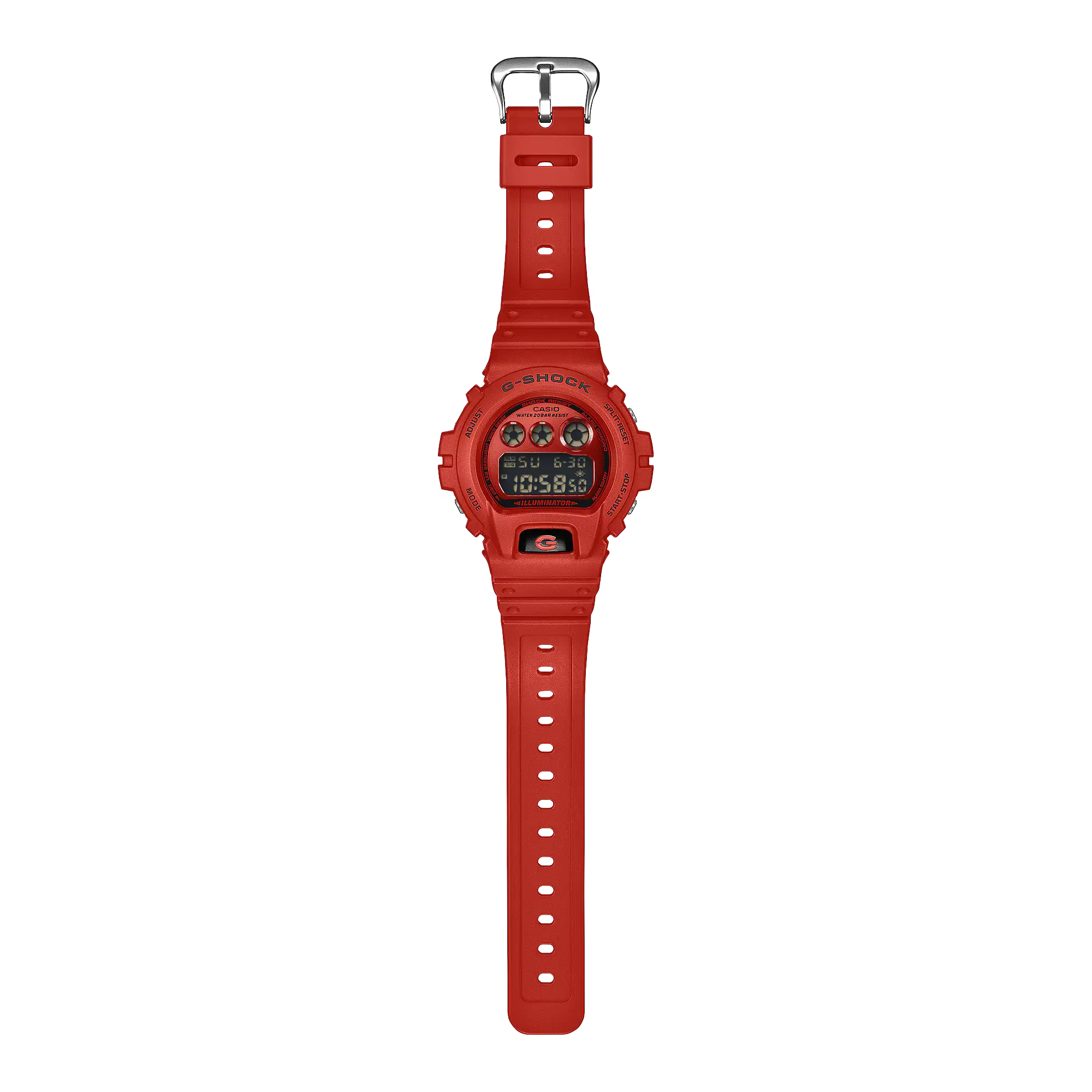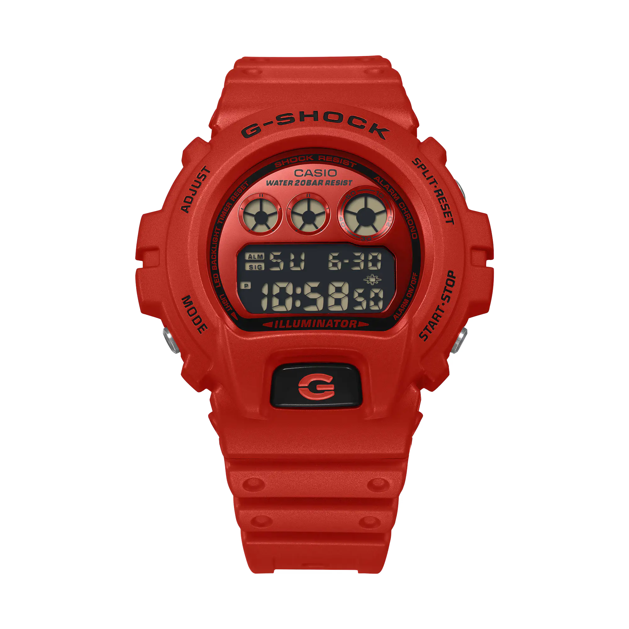G-Shock DW6900RRB-4 Red delivers unmistakable toughness in a head-turning monochrome finish. The iconic 6900 silhouette is drenched in vivid red with subtle black accents that amplify its bold, street-driven presence. A cultural staple reimagined in high-impact color for everyday wear.