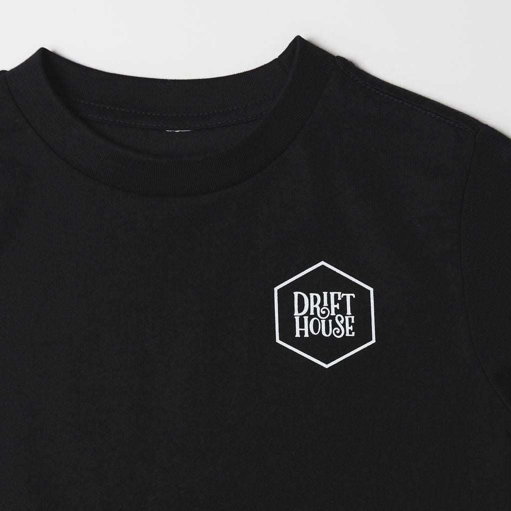 The Toddler Drift House Trippy Dippy Tee in Black brings the classic Drift House vibe to the little groms. With the OG hexagram logo up front and the multicolor trippy dippy graphic on the back, it’s mini-sized stoke with big style. Soft, durable cotton keeps it comfy for nonstop kid energy.
