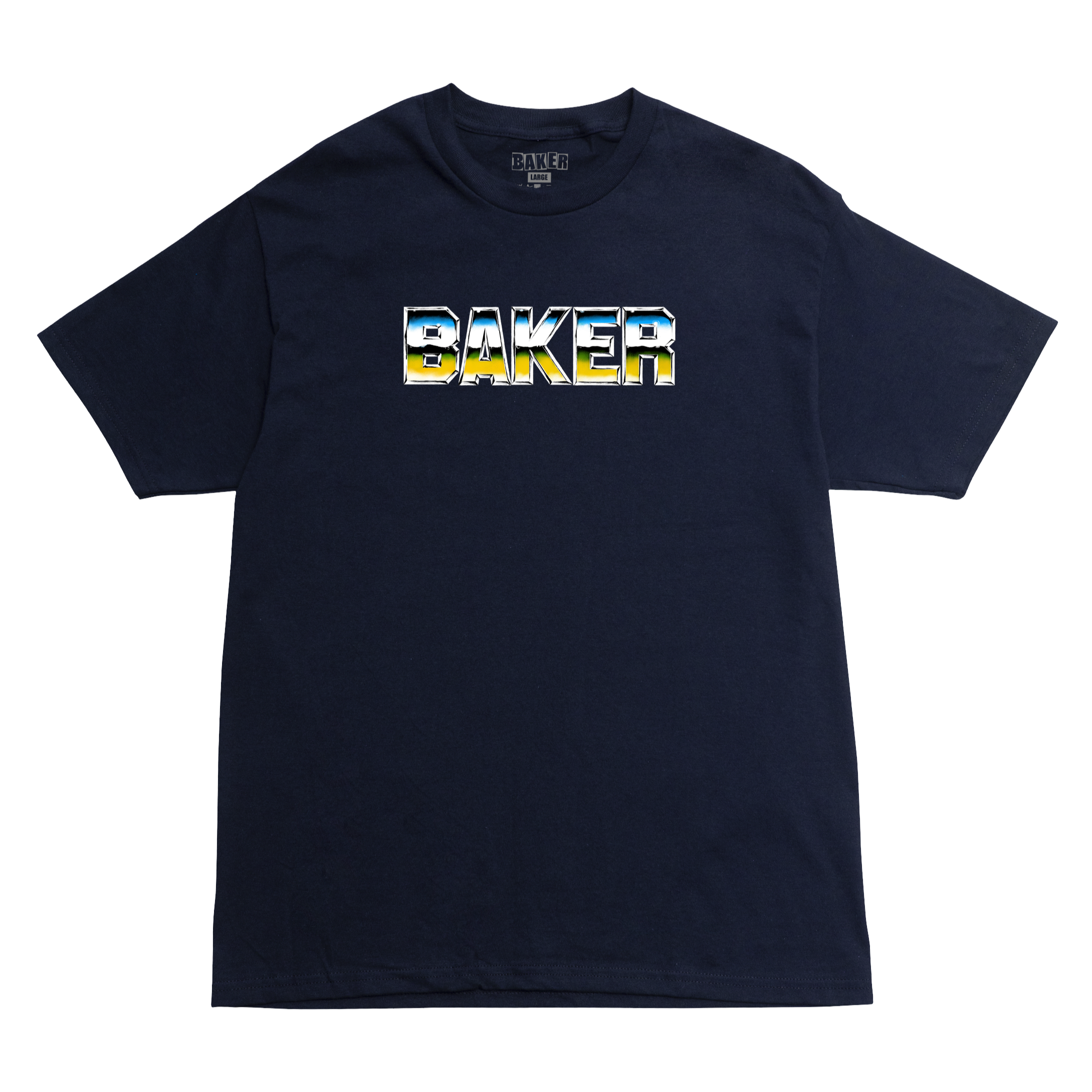 Baker Skateboard's Chrome Zone Tee Navy is a 6.0 oz 100% combed ringspun cotton shirt featuring artwork by Josh Freydkis. Designed with a classic crewneck and screen-printed Chrome Zone graphic on the chest.