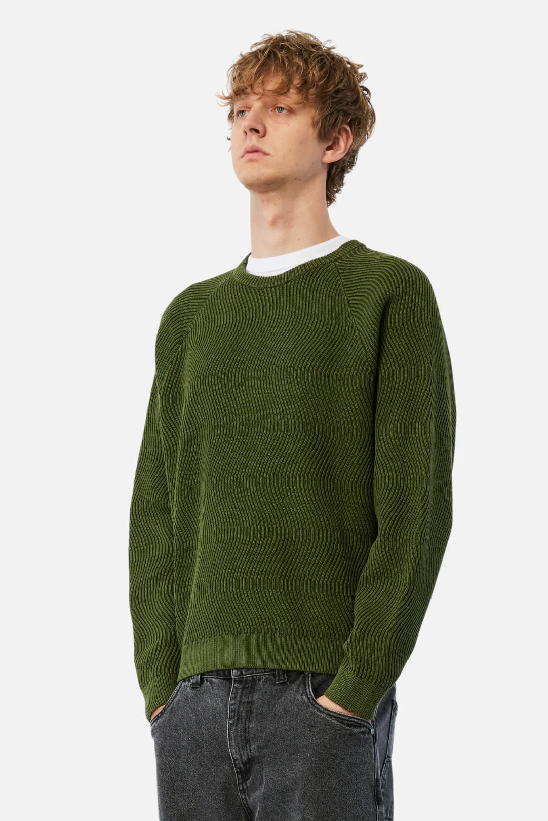 The Dime Wave Knit Sweater in Pine brings that signature Dime balance of clean design and subtle texture, featuring a flowing wave knit pattern that stands out without shouting. The soft knit feel and rich pine color make it an easy grab for cooler days, offering a cozy fit with modern streetwear style.