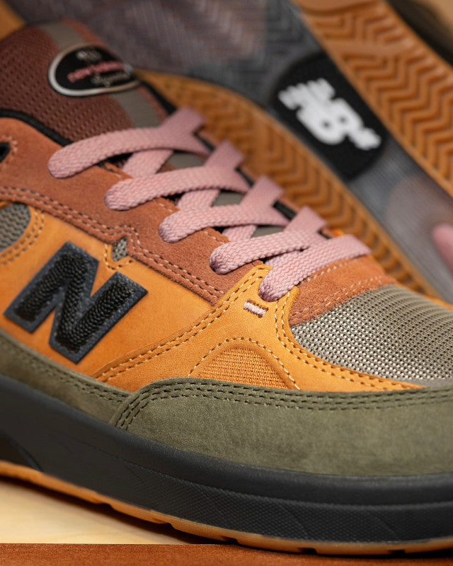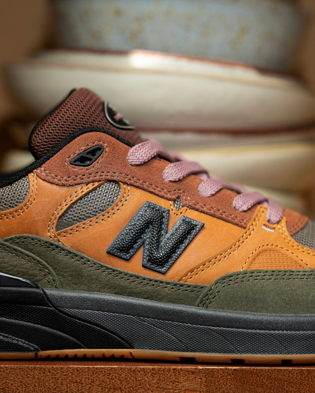 The NB Numeric 933 Andrew Reynolds signature model gets the Mike Gigliotti treatment in a premium True Brown and Candy Pink colorway. Built on heritage New Balance running DNA, this skate shoe pairs retro-inspired design with modern performance tech. FuelCell foam provides responsive energy return while ABZORB cushioning absorbs heavy impacts. The suede and mesh upper delivers breathability and durability, finished with an Ndurance rubber outsole engineered to withstand high-wear skating.