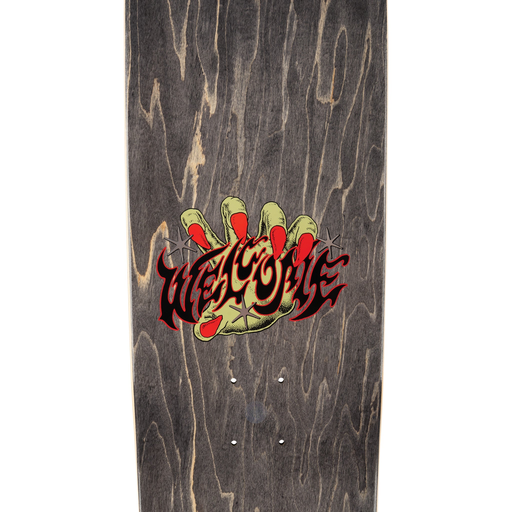 Welcome Jake Yanko Wilted on Panther 9.0 is the pro model deck for Jake Yanko with green stain and silver foil accents. It measures 9.0″ × 32.5″ with a 14.75″ wheelbase on the Panther pro shape, built for street and park. Traditional maple construction throughout.