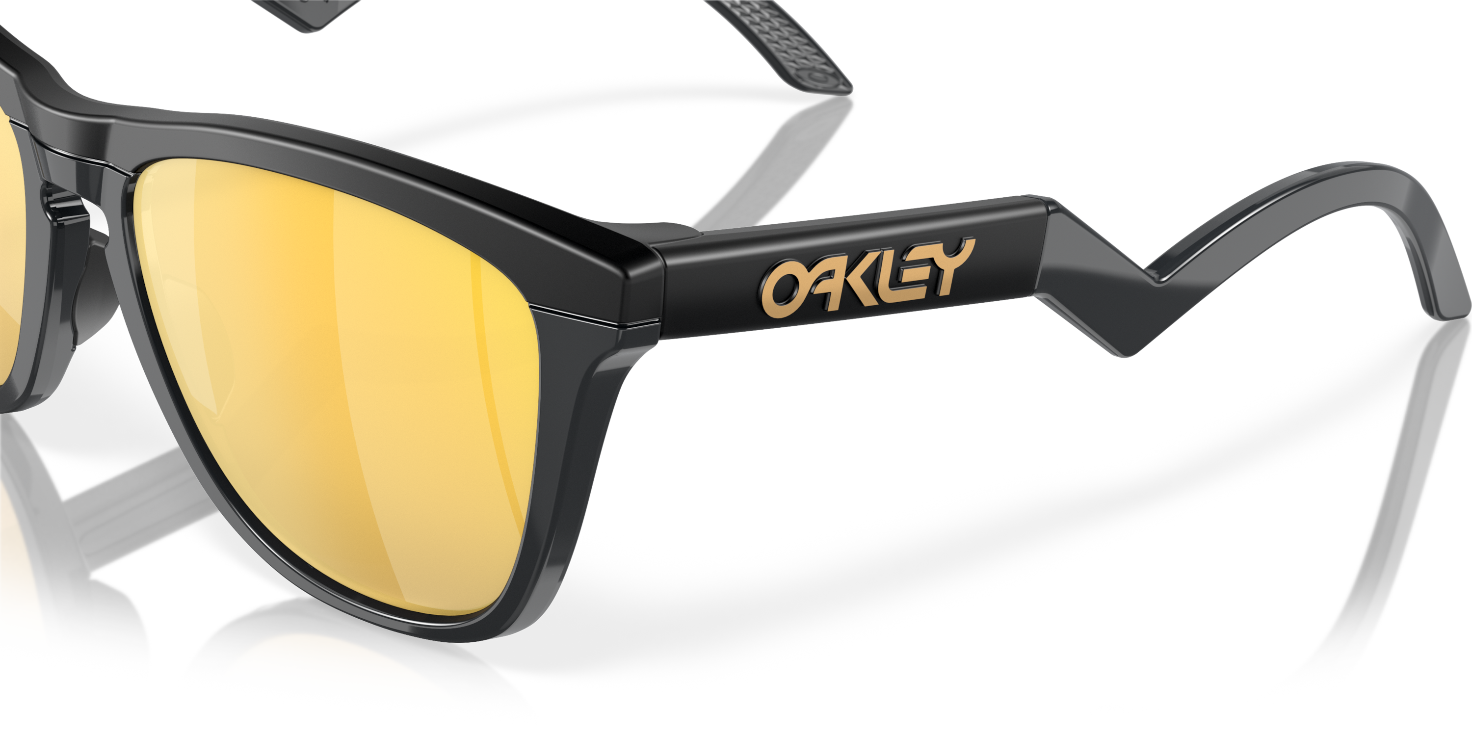 Oakley Frogskins™ Hybrid sunglasses are a nod to the '80s, blending classic Frogskins™ style with the Razor Blades' trigger stem design. These sunglasses are constructed from eco-friendly BiO-Matter™ and feature unique color breaks, Prizm™ Sapphire lenses to enhance visual clarity, and Unobtainium® nosepads for a secure, comfortable fit.