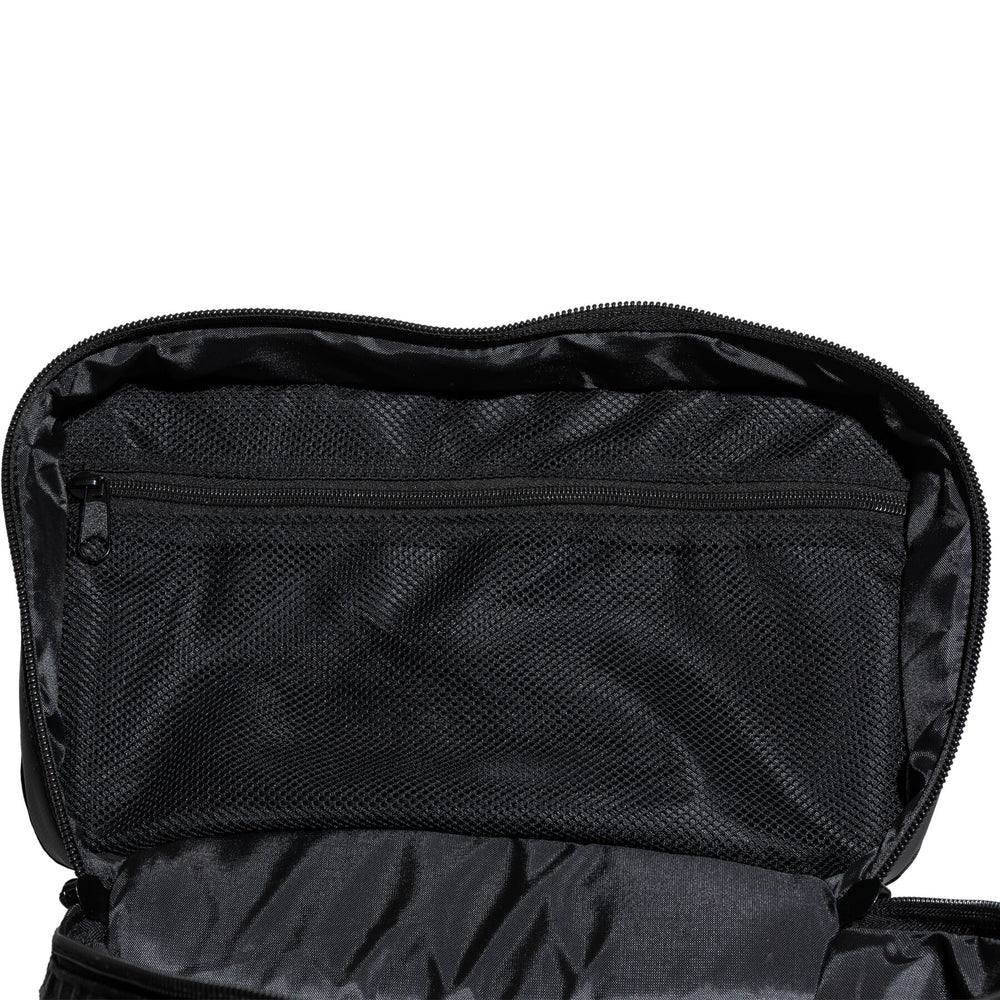 The Spitfire Classic '87 Box Pack Backpack in Black/Black is built for tough conditions with a waterproof-coated nylon shell. Features include a top-load design, breathable mesh back padding, skateboard straps, and daisy chain attachment points. Stowable backpack straps and dual carry handles offer versatility.