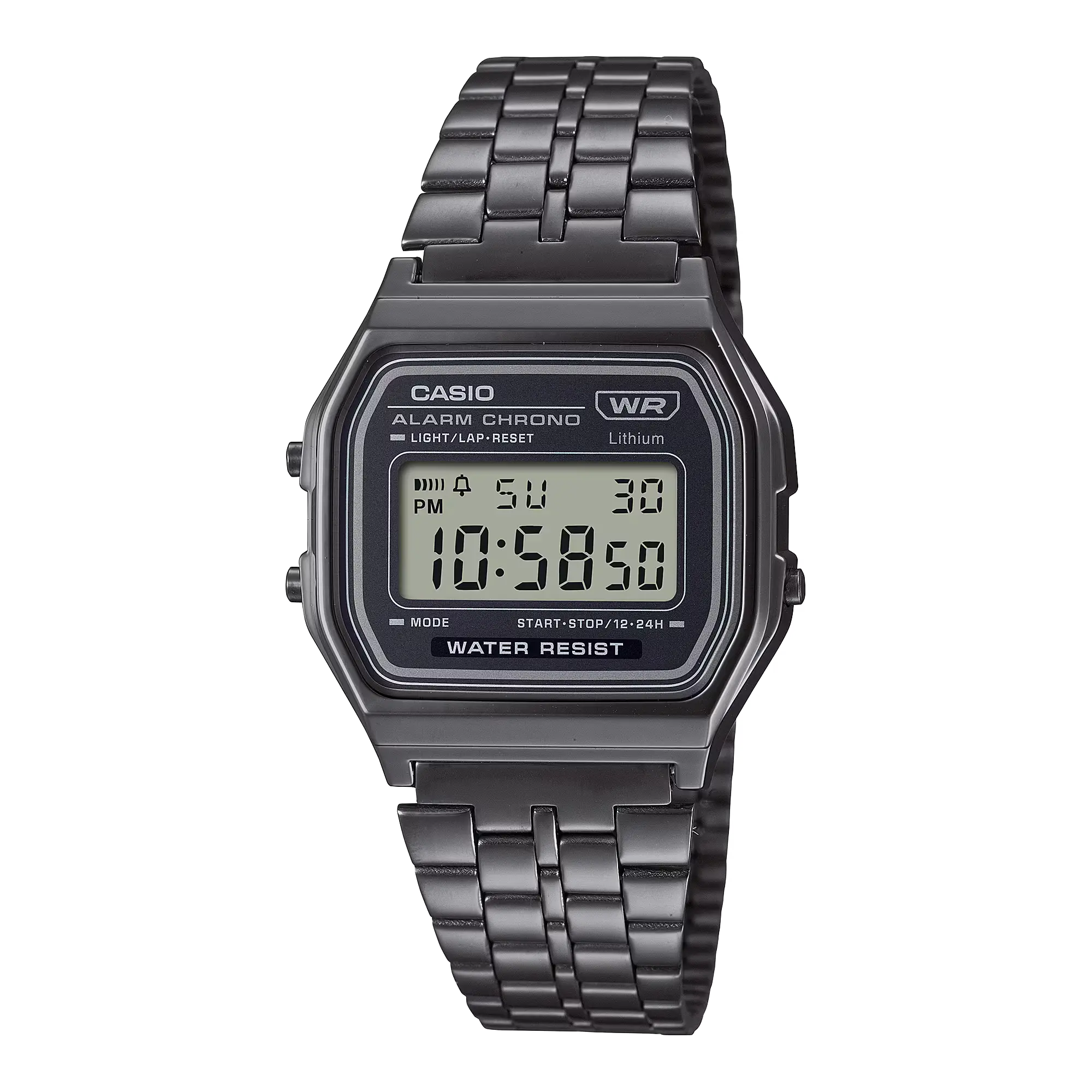 The Casio Vintage A158WETB-1A Watch delivers a classic digital look with a blacked-out finish and compact square profile. Designed for everyday wear, the lightweight build and durable construction keep the design practical and timeless. A reliable digital layout keeps things clean and easy to read.
