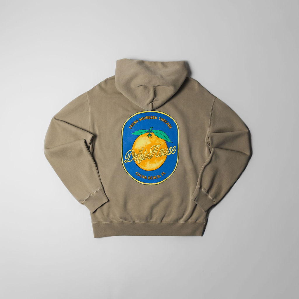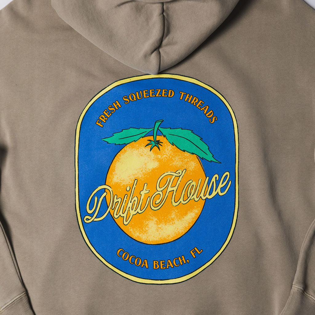 The Drift House Fresh Squeezed Hoodie in Taupe taps straight into those classic Florida roots with bold citrus-inspired graphics front and back. The relaxed, garment-dyed fleece gives it a lived-in feel from day one, while the drop shoulders and roomy fit keep it cozy for beach mornings, cool nights, and whatever’s in between. A mellow everyday hoodie with true Cocoa Beach DNA.