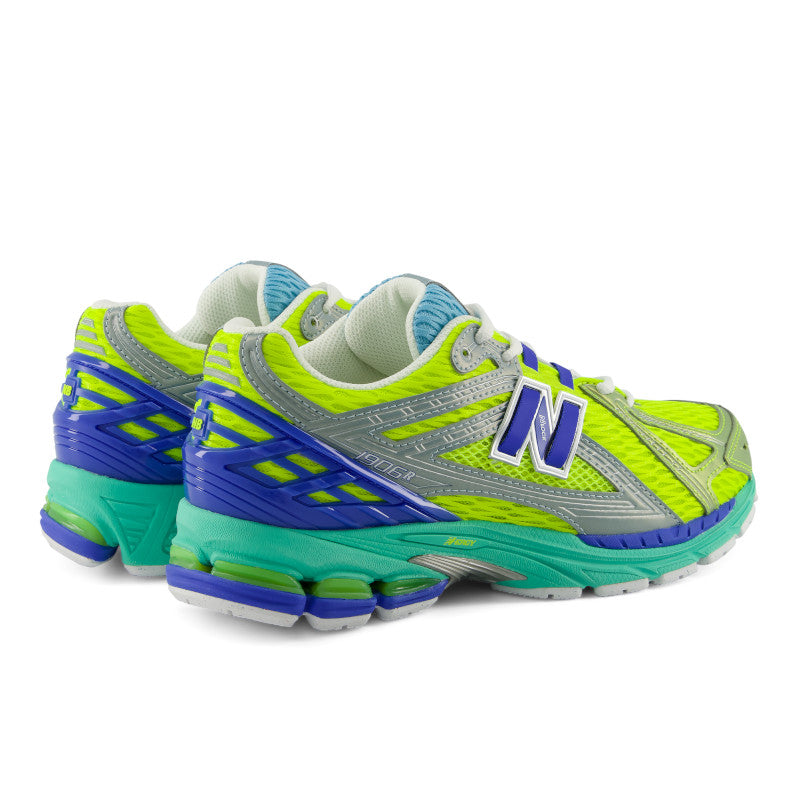 The New Balance 1906RV1 in Alkaline Green/Neon/Blue levels up a 2000s classic with a sleek, tech-driven edge. It blends high-tech cushioning with retro-inspired design for a performance edge and street-ready style.