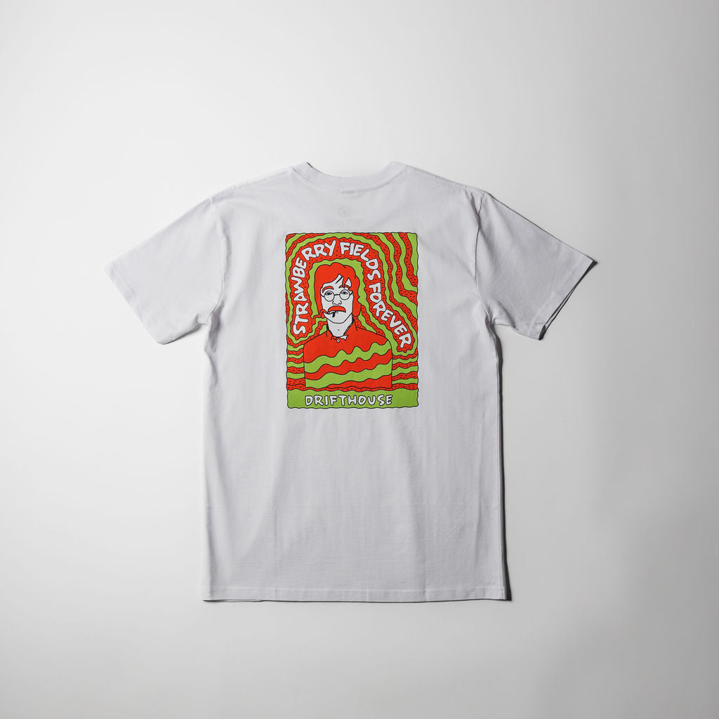 The Drift House Strawberry Nights Tee brings back a shop classic with a nod to Beatles-era psychedelia. The trippy back graphic featuring a Lennon-inspired illustration sets the vibe, while the heavyweight, premium cotton build keeps it feeling timeless and sturdy. A true blend of music nostalgia and Cocoa Beach cool.