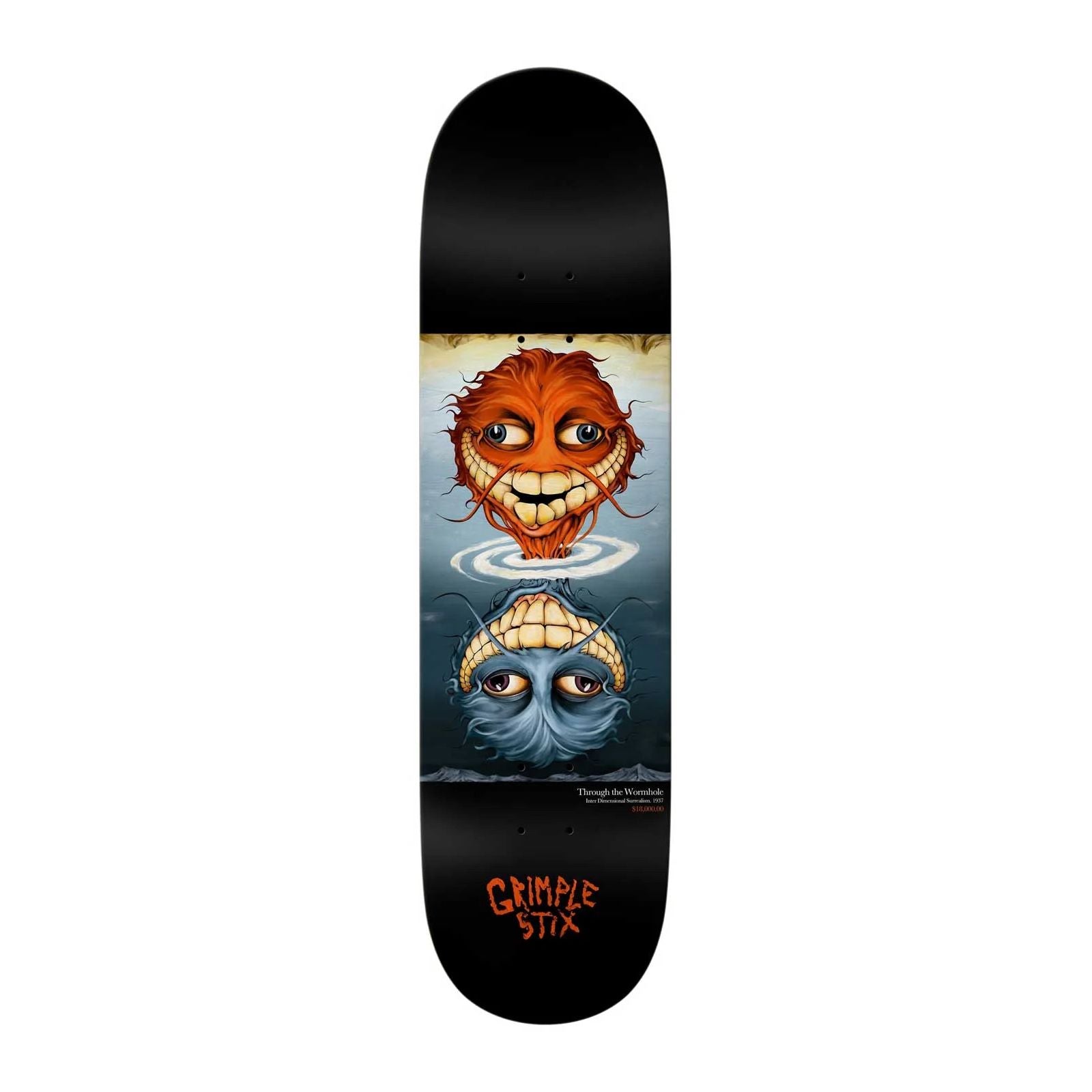 Antihero’s Grimple Stix Fine Art Deck blends an 8.5" shape with “Through The Wormhole,” a surrealist-inspired Grimple graphic with heavy 1930s energy. The longer 32.18" length and 14.38" wheelbase keep the feel steady with extra room to move.