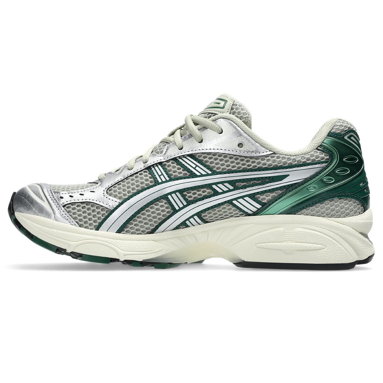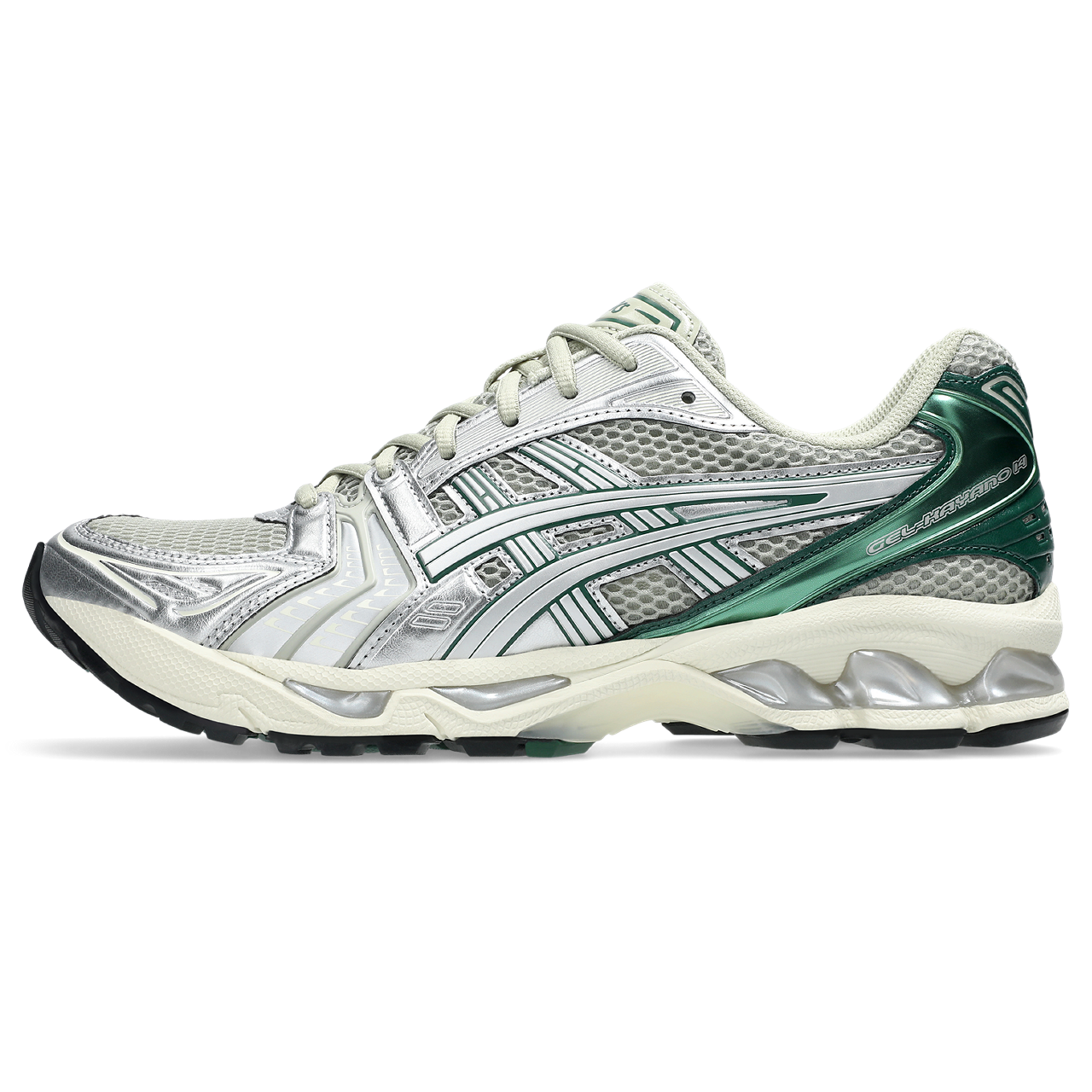 The Asics Gel Kayano 14 in Dried Leaf Green/Pure Silver revives late 2000s design with modern updates. Featuring GEL™ cushioning for advanced impact absorption, it blends retro aesthetics with contemporary performance. Inspired by the original 2008 tooling, this iteration continues the storied Gel Kayano legacy with fresh materials and construction.