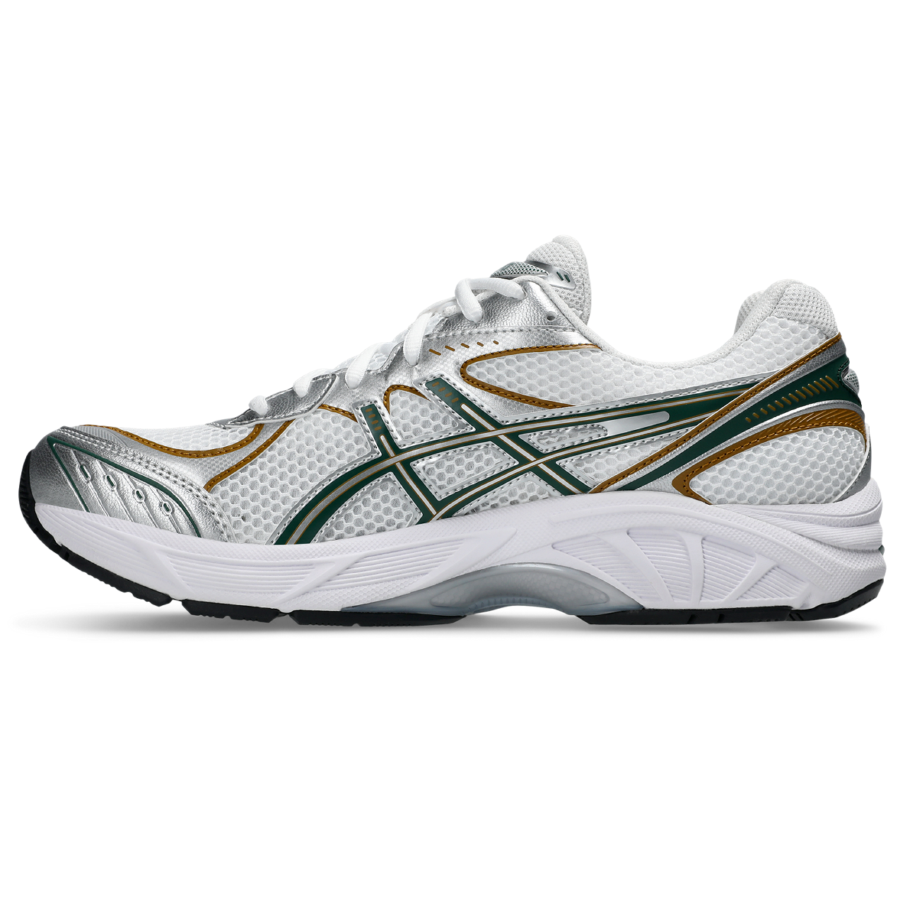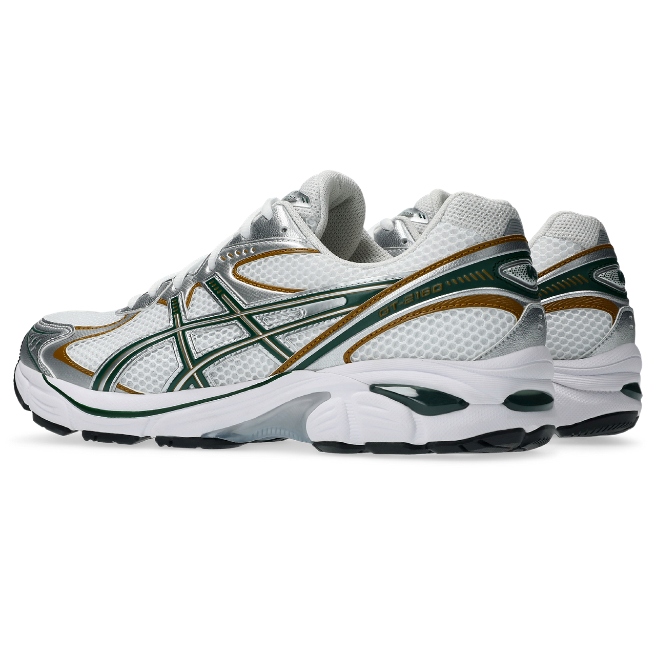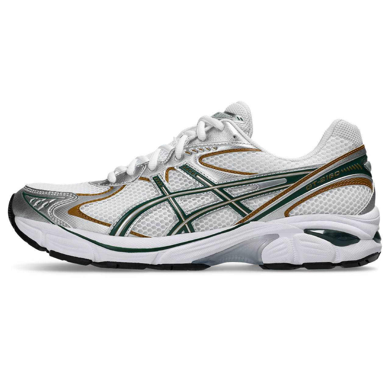 The ASICS GT-2160 in White/Grove revives a 2010s-era runner with sleek lines and wavy forefoot sculpting. Featuring GEL® cushioning and a segmented midsole, it pairs technical design heritage with smooth, modern-day comfort.