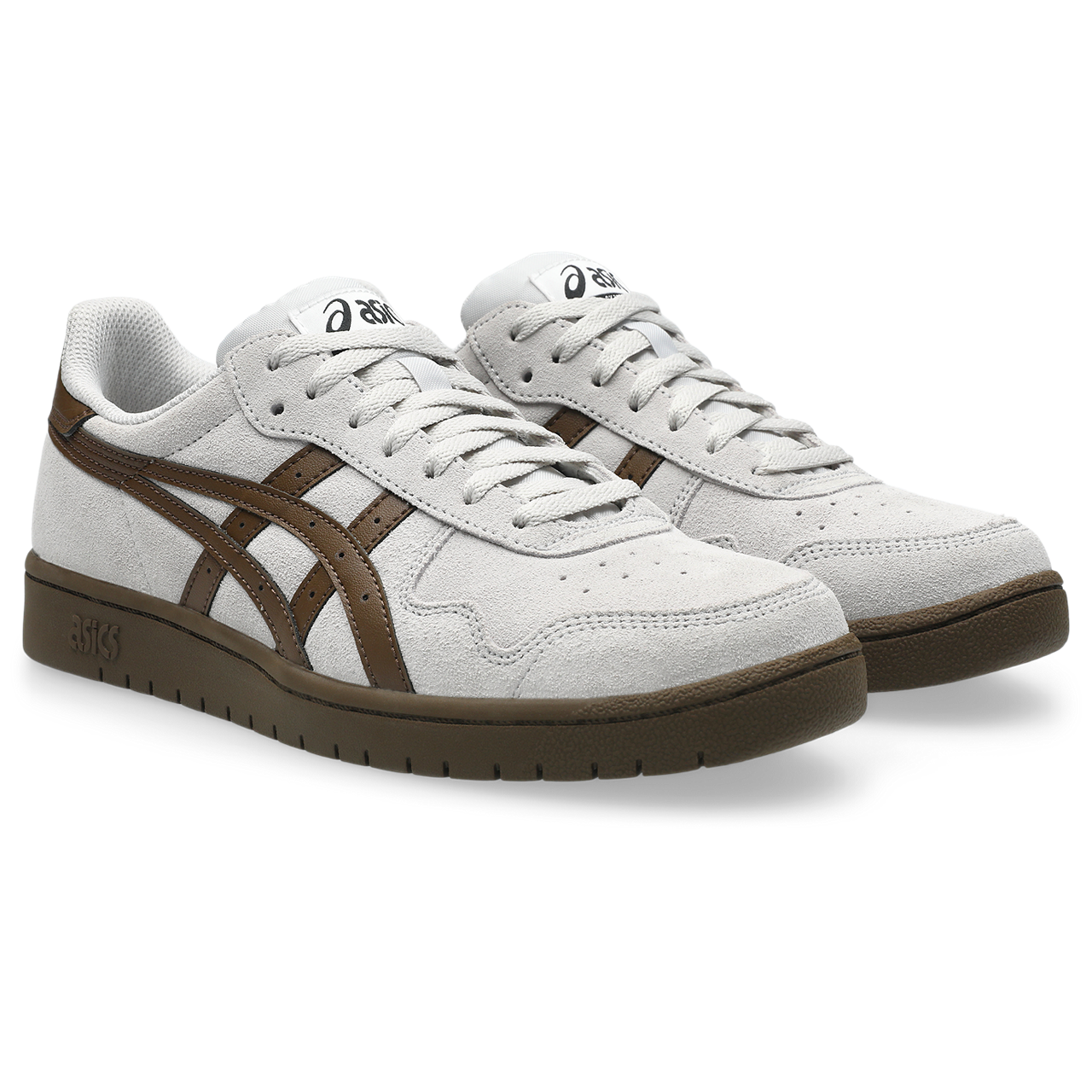 The ASICS JAPAN PRO in Cloud Grey/Brown Storm brings archival basketball style to modern skateboarding. Based on the 1981 FABRE JAPAN S™, this model features a durable suede upper, reinforced stitching, and added support through a padded tongue and elastic band construction for locked-in comfort.