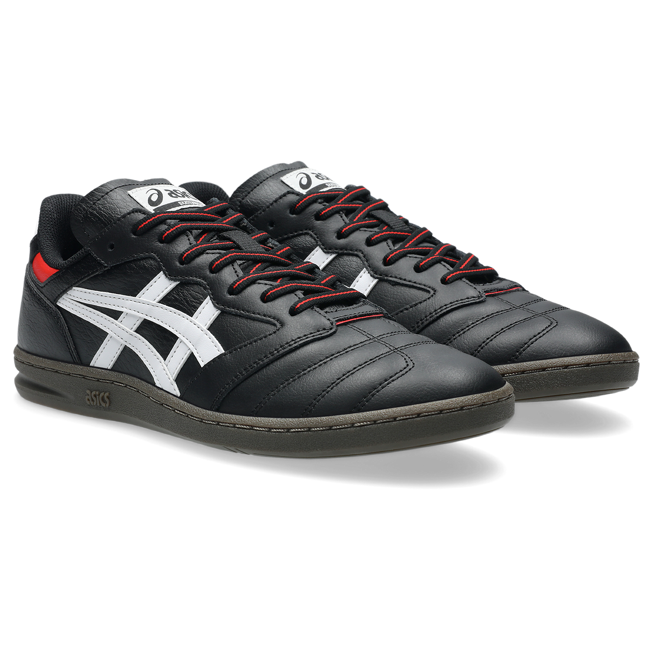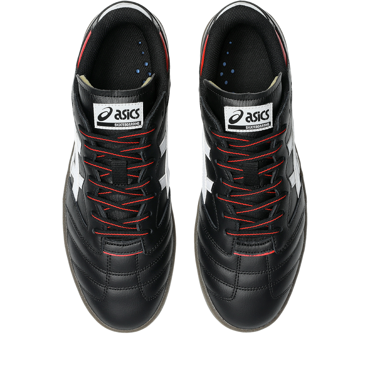The ASICS Leggerezza FB is the debut skate model from Gino Iannucci and ASICS Skateboarding. Inspired by a 1989 Arrezzo football cleat and classic court shoes, it features navy leather, mesh panels, and a stitched toebox. Subtle hockey details appear throughout.