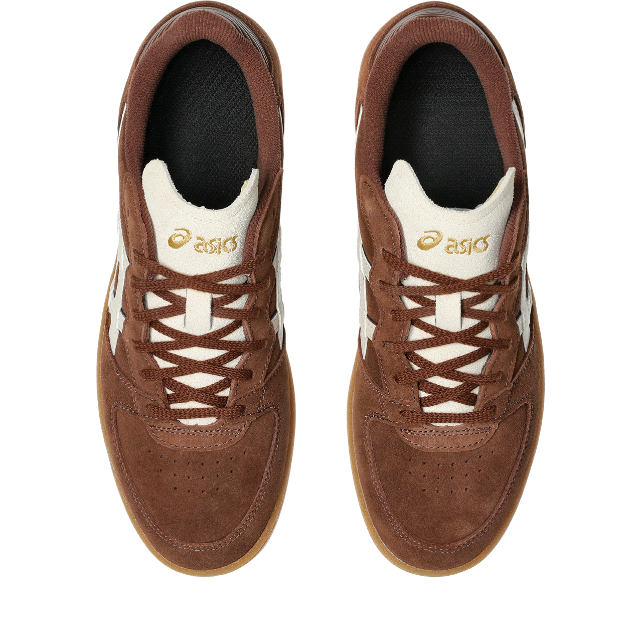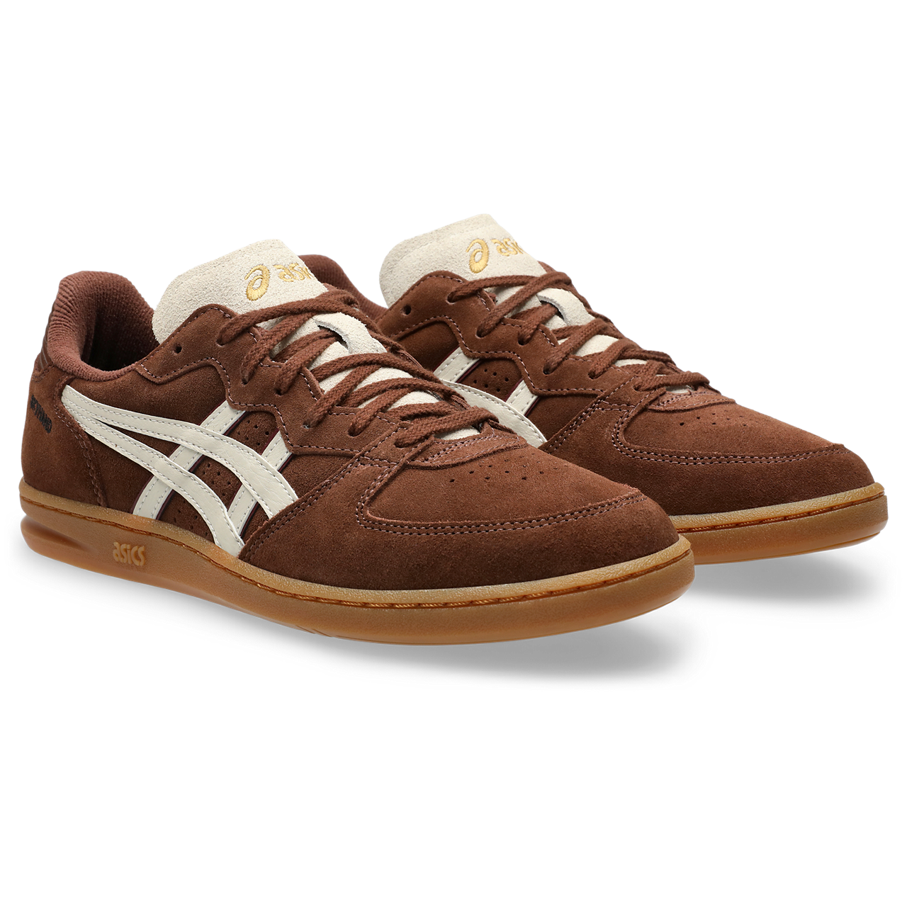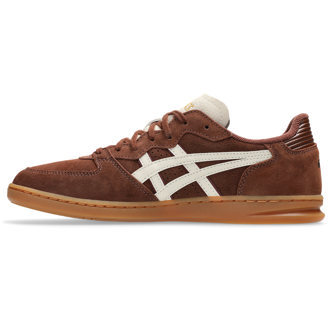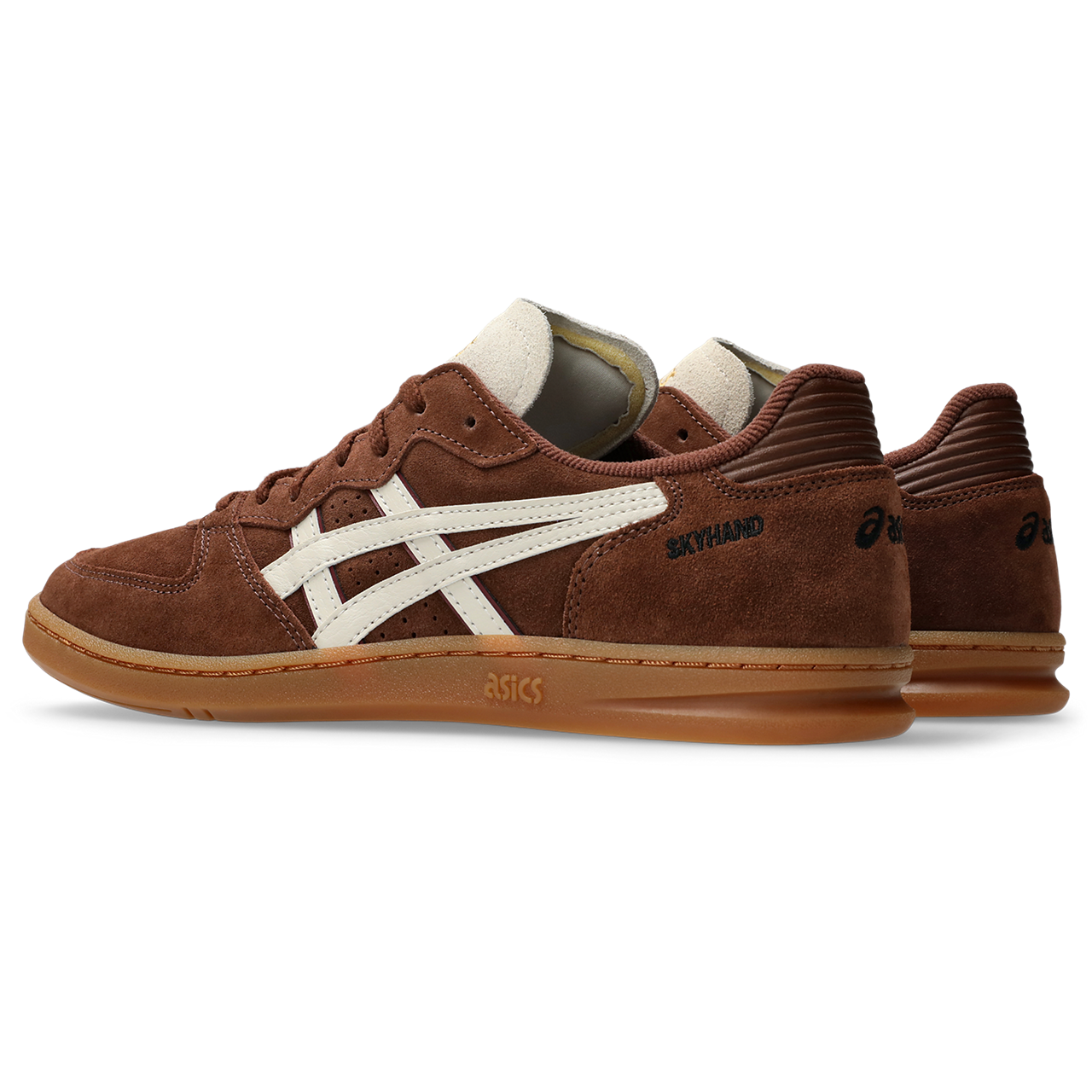 The ASICS SKYHAND™ OG in Reddish Brown/Oatmeal revives 1990s handball heritage with a slimmed-down court silhouette. Suede paneling, gum outsole, and modern cushioning updates bring retro sport style into everyday wear.