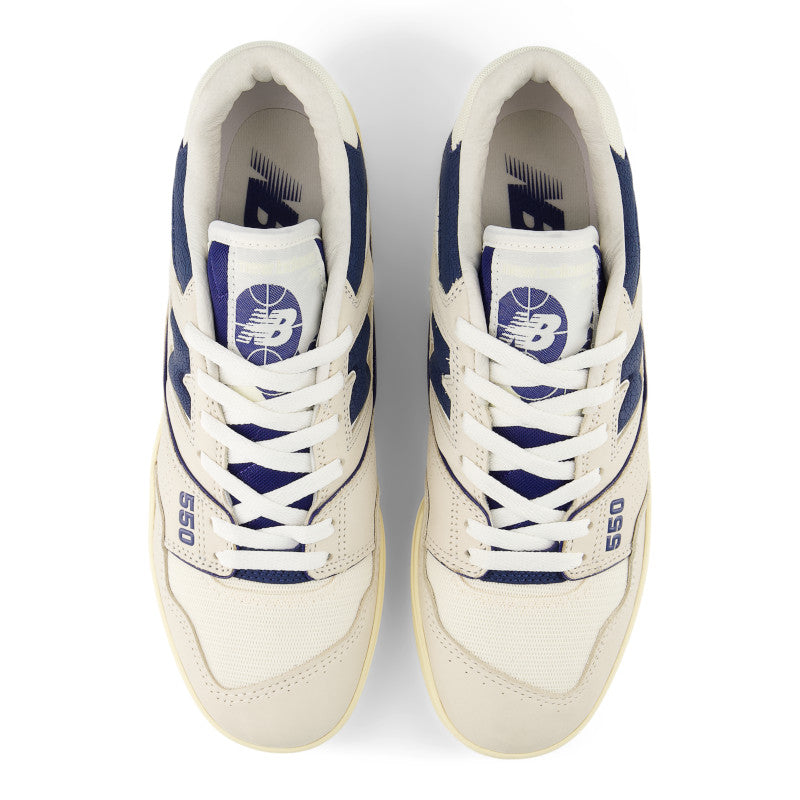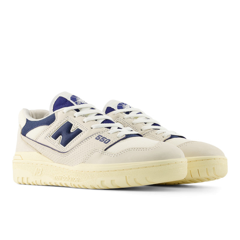 The New Balance 550 in Permafrost/Blue Oyster revives the ’89 basketball classic with fresh tones and timeless structure. Leather upper, retro low-top silhouette, and rugged rubber outsole combine for style that plays as hard as it looks.