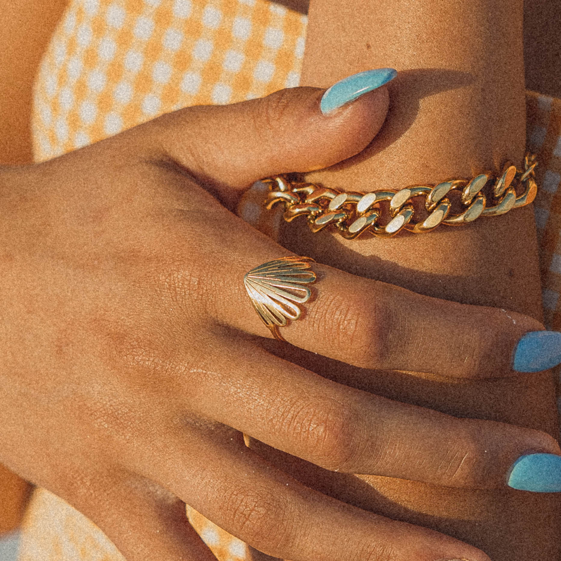El anillo Island Girl, una elegante propuesta de ALCO Jewelry en Drift House, irradia un aire despreocupado y elegante. Este anillo de acero inoxidable bañado en oro de 18 quilates está diseñado para brindar estilo y comodidad. Sin níquel e hipoalergénico, es una excelente opción para pieles sensibles. La naturaleza resistente al agua del anillo aumenta su practicidad, lo que lo convierte en un accesorio perfecto tanto para el uso diario como para ocasiones especiales.