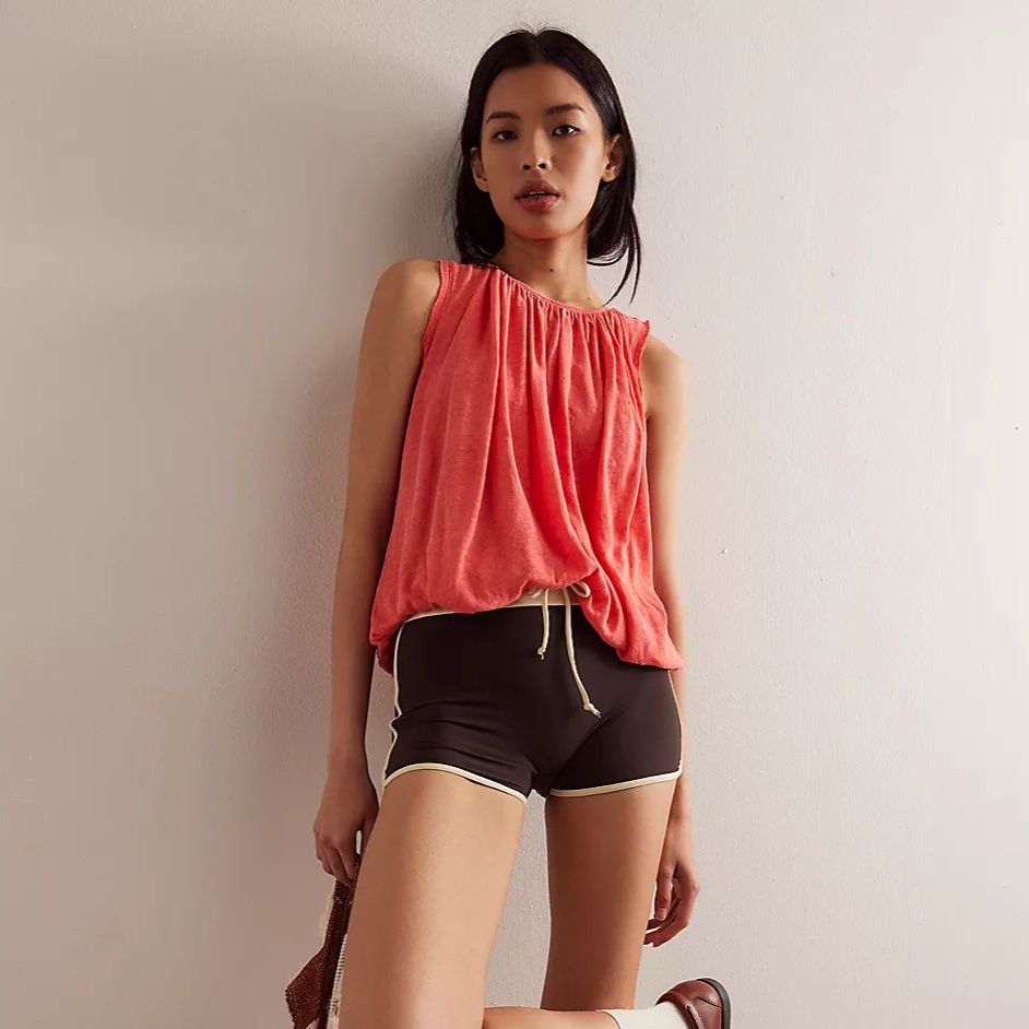 La camiseta de tirantes We The Free Unconditional de The Free People en rojo intenso presenta una mezcla ligera de algodón y lino con un corte holgado y holgado. Esta elegante camiseta de tirantes tiene sisas escotadas, detalles plisados y un dobladillo inferior elástico para un estilo elegante e informal.