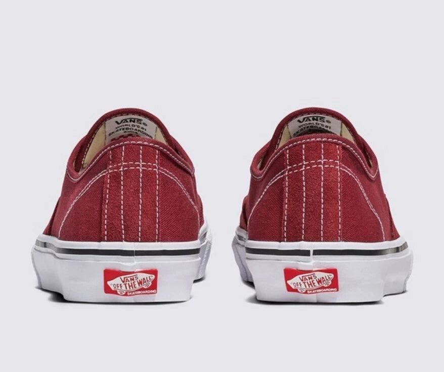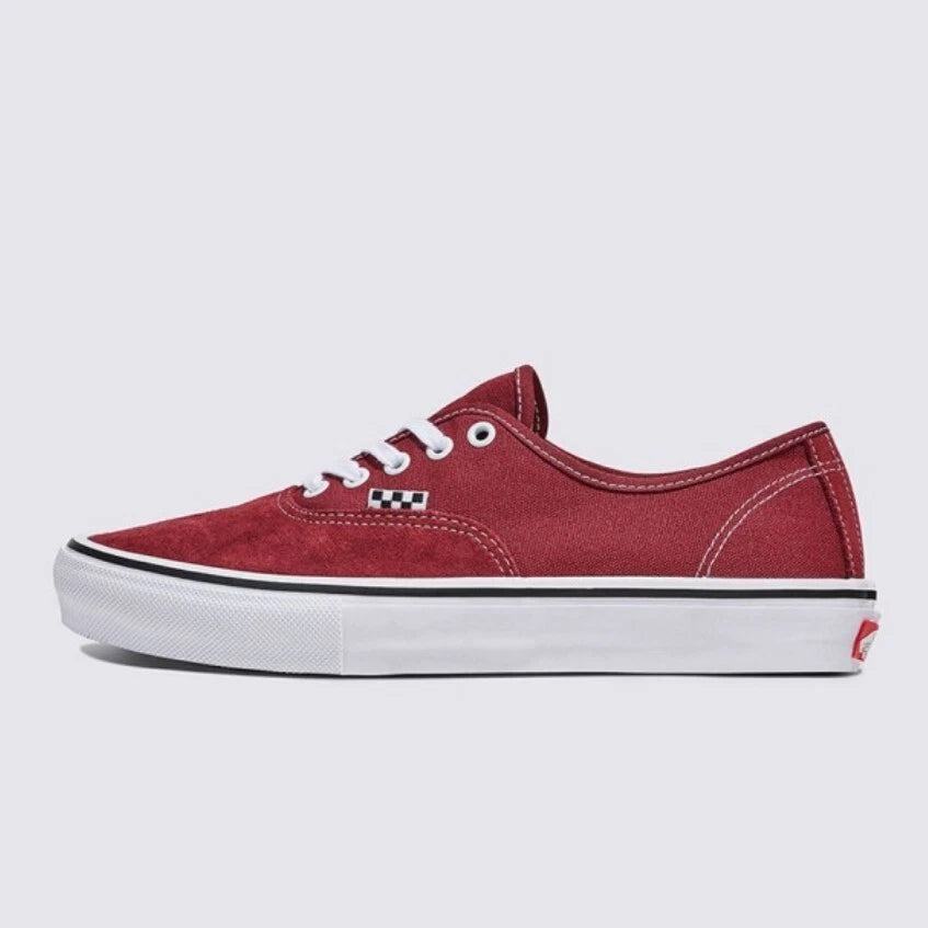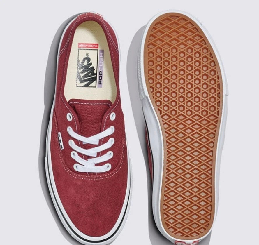 Las zapatillas Vans Skate Authentic en color burdeos y blanco combinan un estilo icónico con un rendimiento moderno en el skate. Con refuerzo DURACAP™ para mayor durabilidad, goma SickStick™ para mayor agarre y amortiguación PopCush™ para protección contra impactos, estas zapatillas ofrecen comodidad y control para sesiones de skate prolongadas.