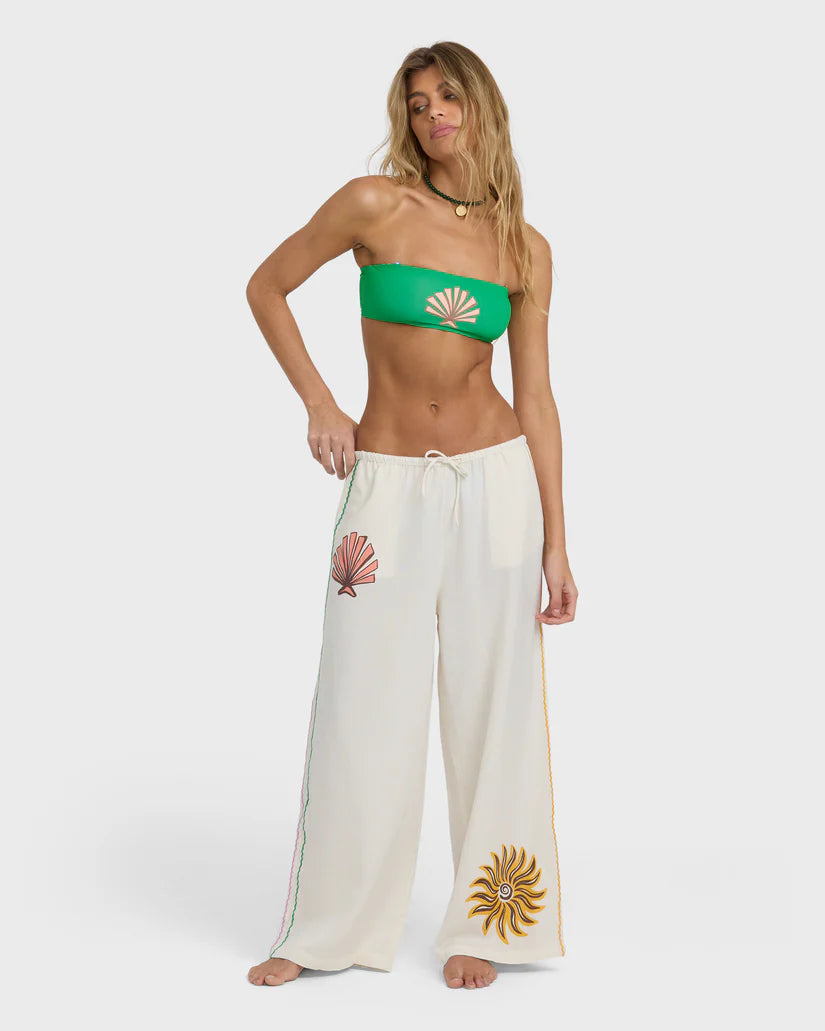 Billabong Wave Haze Cover-Up Pants in Salt Crystal feature a lightweight woven fabric with a relaxed silhouette ideal for beach or casual wear. Designed with an elastic waistband and high side slits for easy movement and airflow.