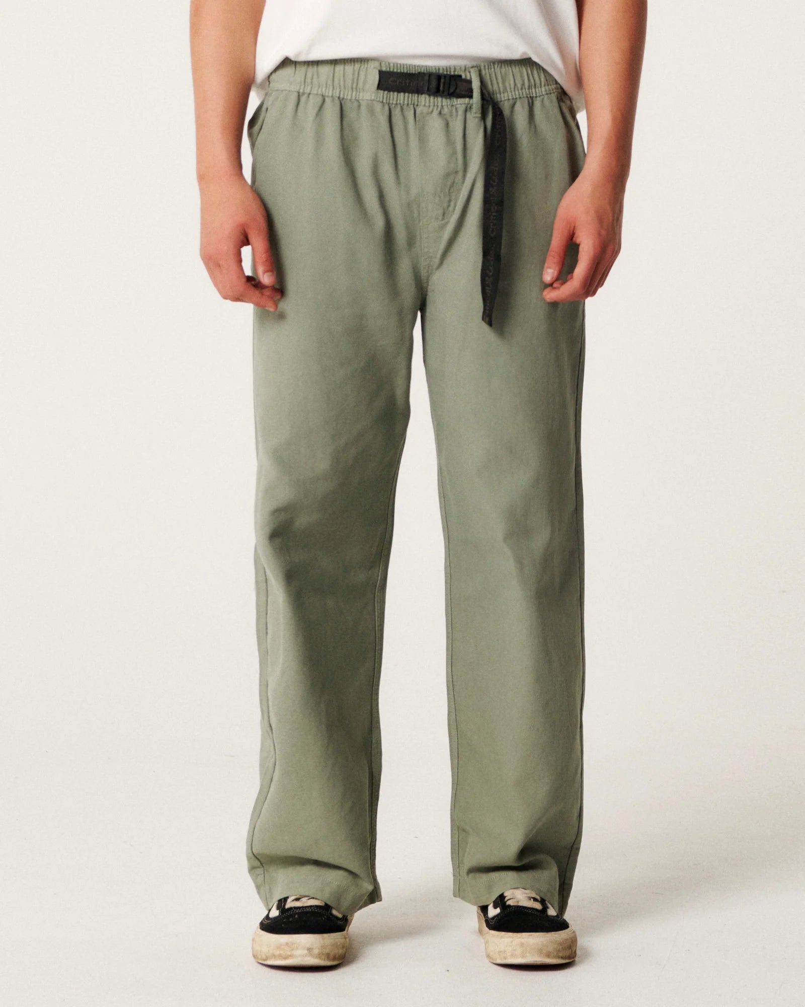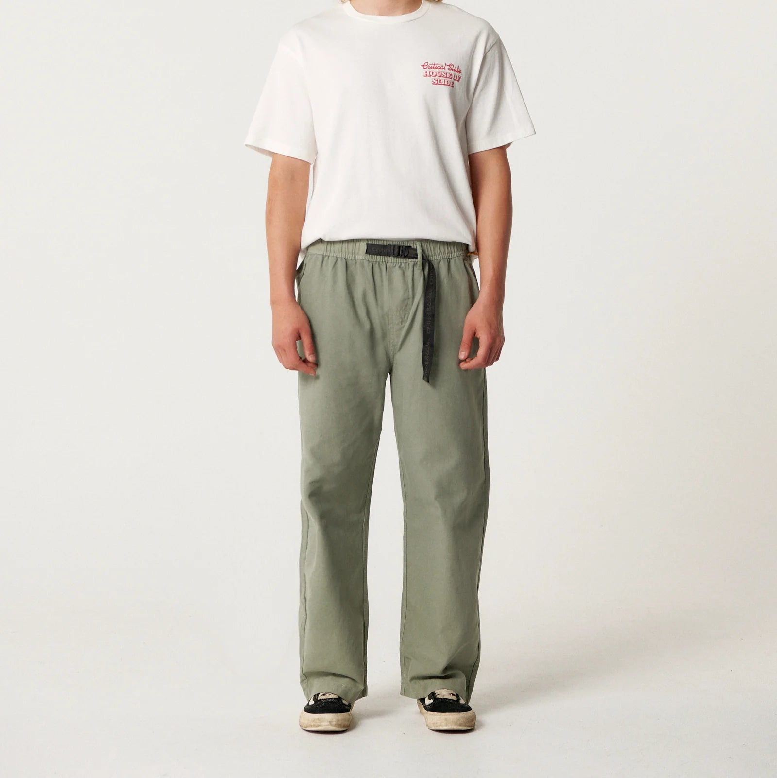 The Ex Critical Slide Outdoor Pant in Dusty Green delivers a utilitarian edge with everyday wearability. Constructed from durable cotton canvas, it features a straight-leg fit with contrast patch paneling for added style. A jacquard nylon webbing belt with buckle closure completes the functional, design-forward look.