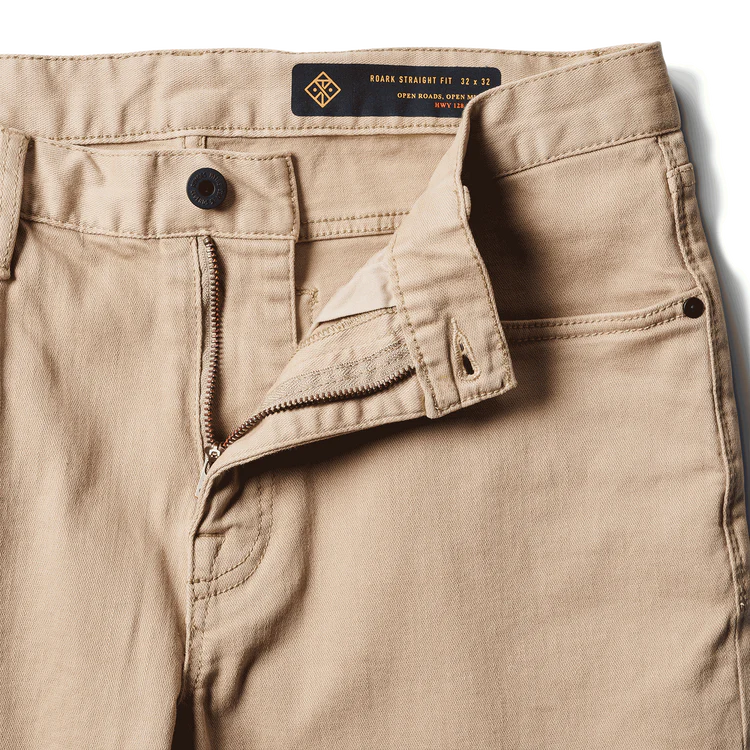 The Roark HWY 128 Jeans in Desert Khaki blend rugged durability with a straight-fit silhouette. Made from Hempworx™ broken twill denim with garment dye finishing, they deliver comfort, roomier rise, and timeless utility for everyday wear.