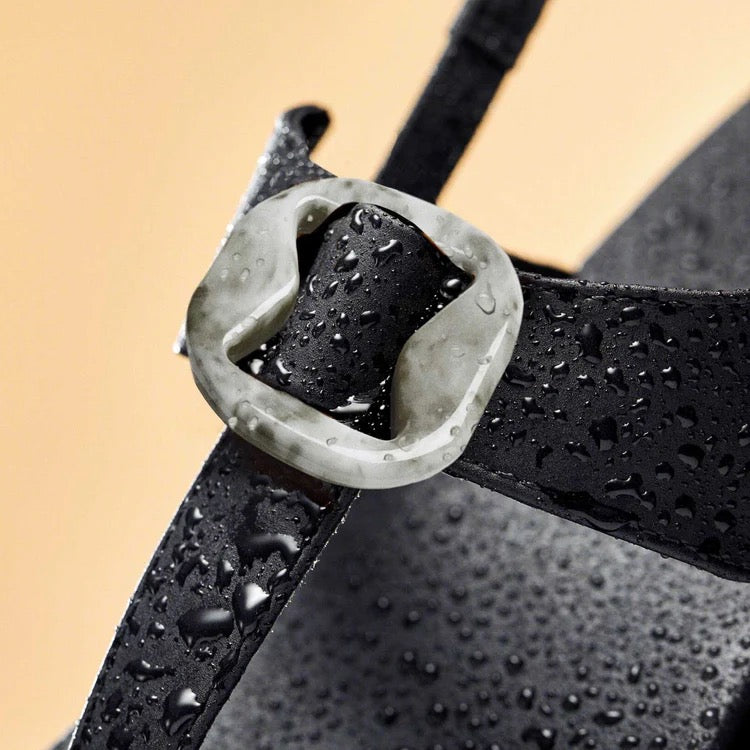 The OluKai La‘i T-Bar Sandal in Lava Rock blends modern elegance with everyday comfort. A stretchable strap and tubular toe post ensure a secure yet flexible fit, while a tortoise shell buckle and chic back strap add stylish detail. Designed for effortless transitions between casual and dressy occasions.