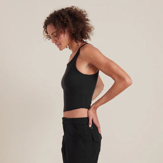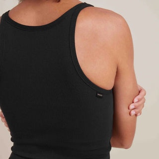 A cropped tank top made from moisture-wicking Dri-Release rib knit fabric for breathability and comfort. Designed with durable skinny straps for a secure fit.