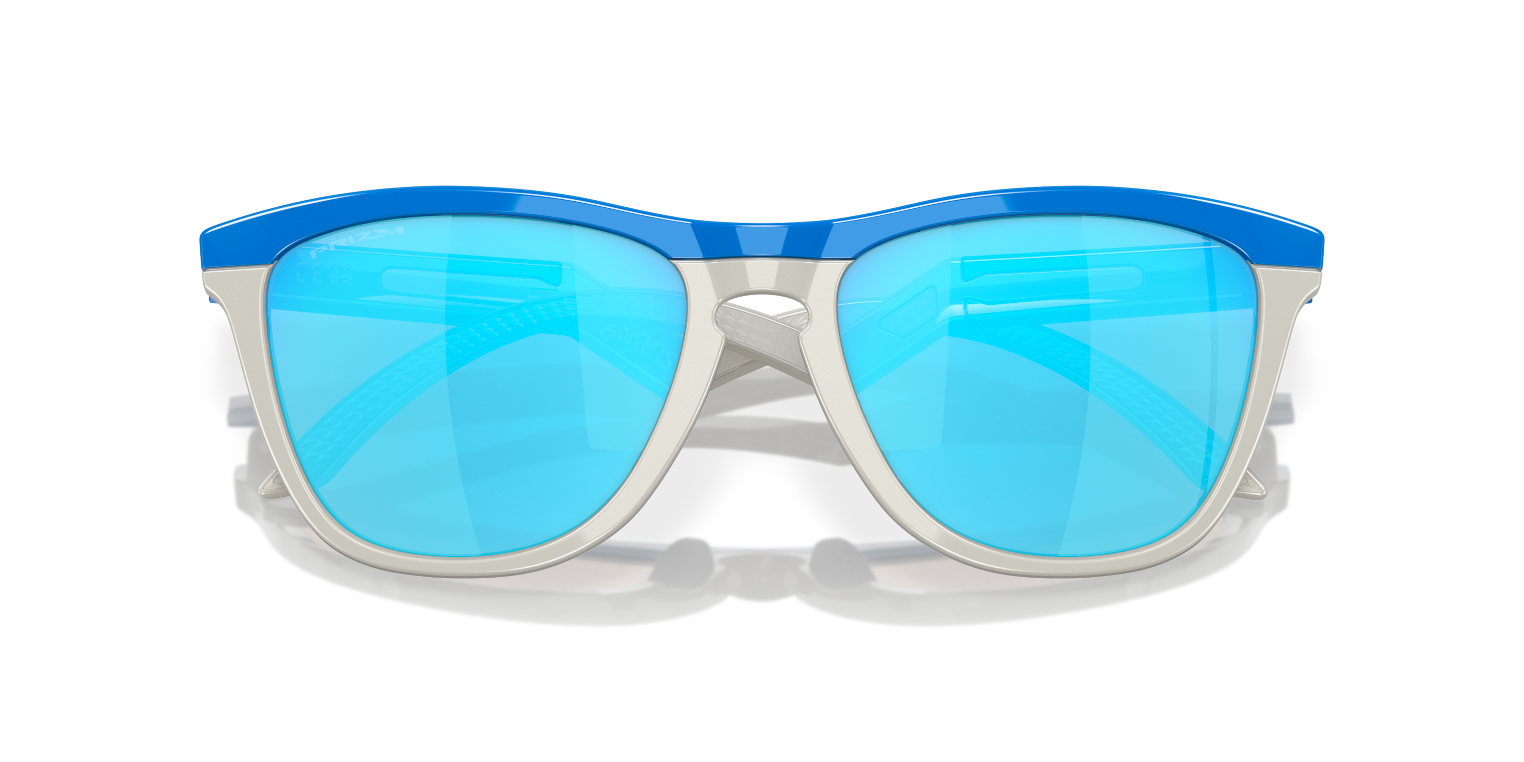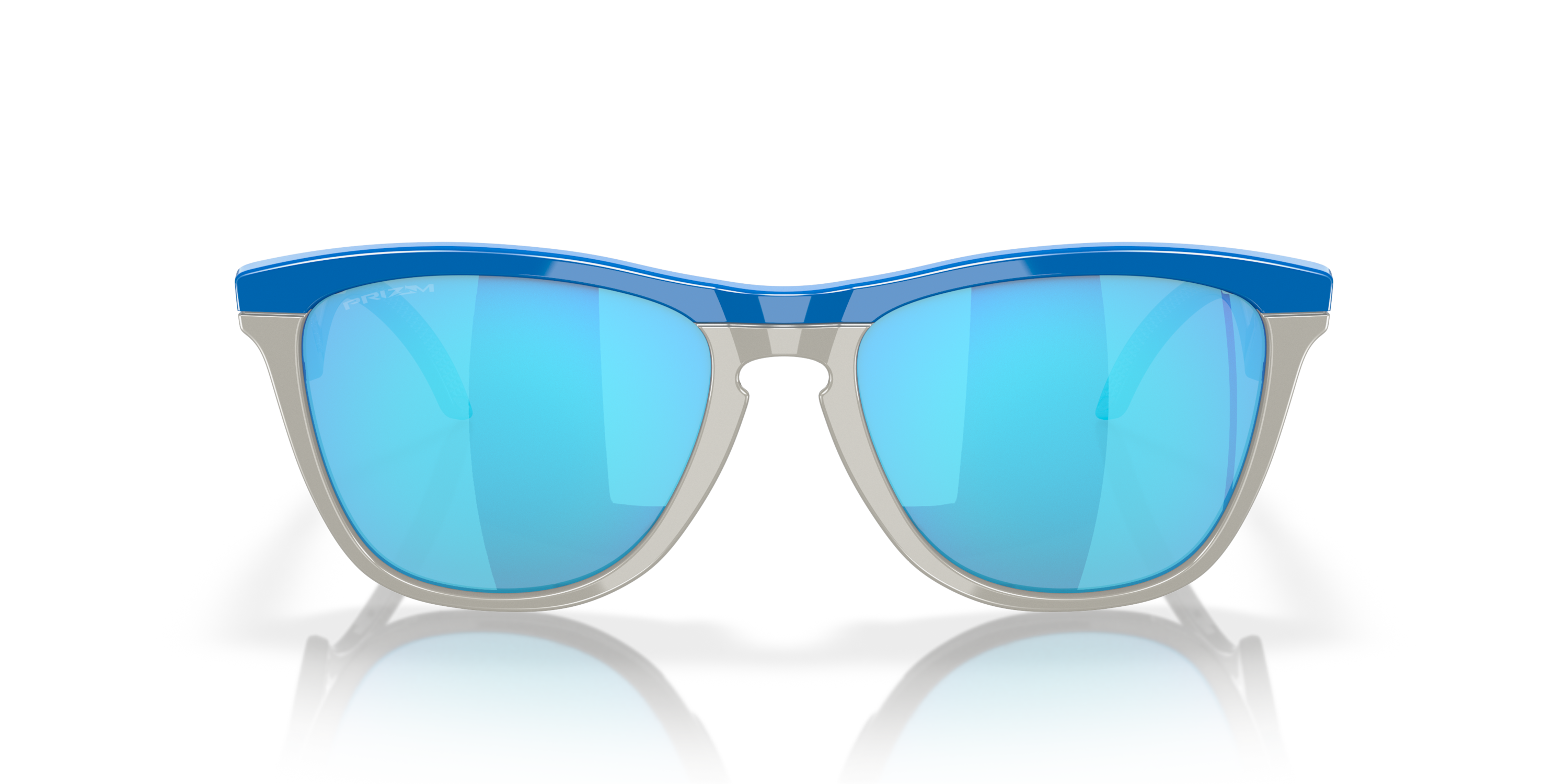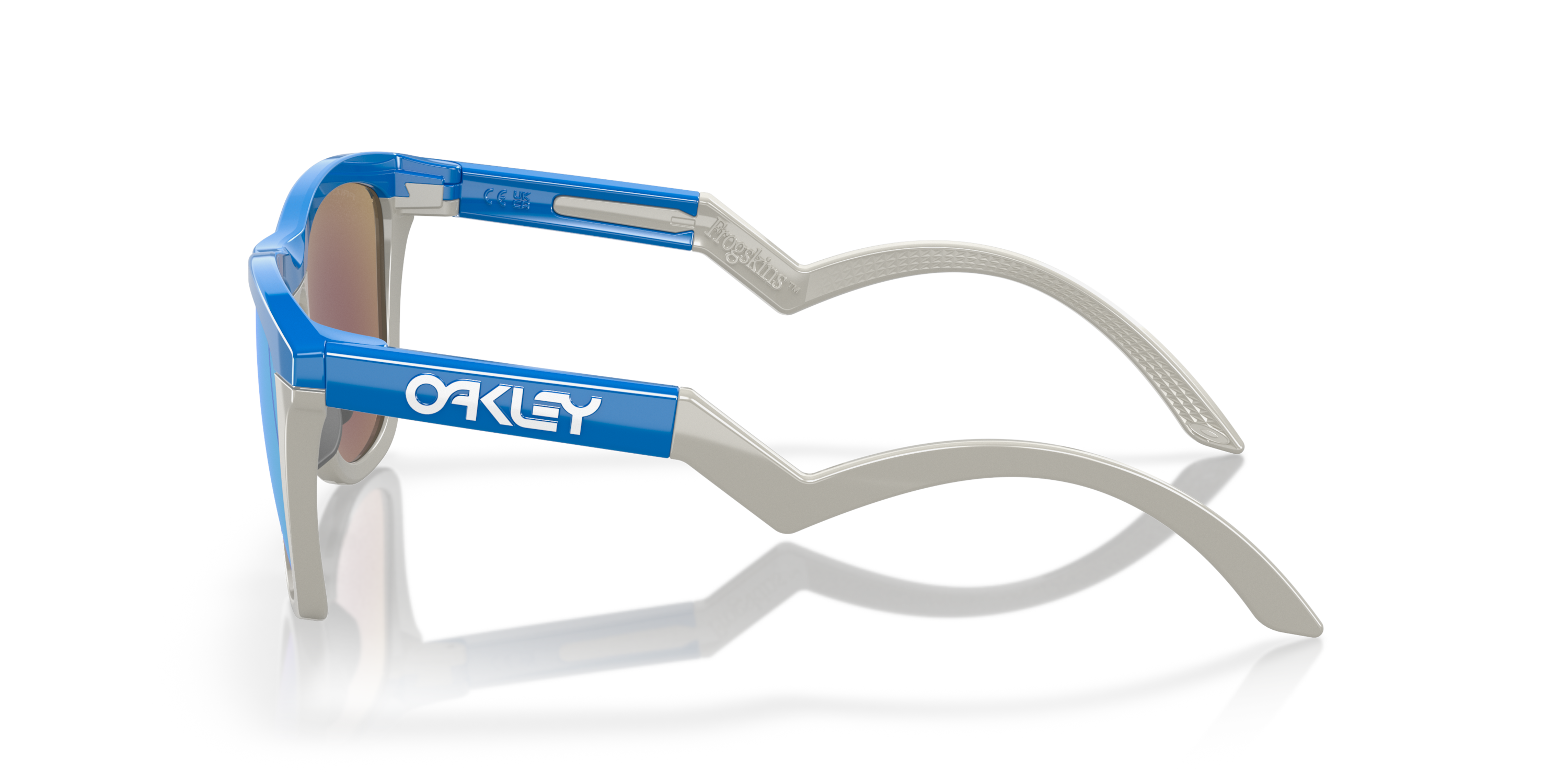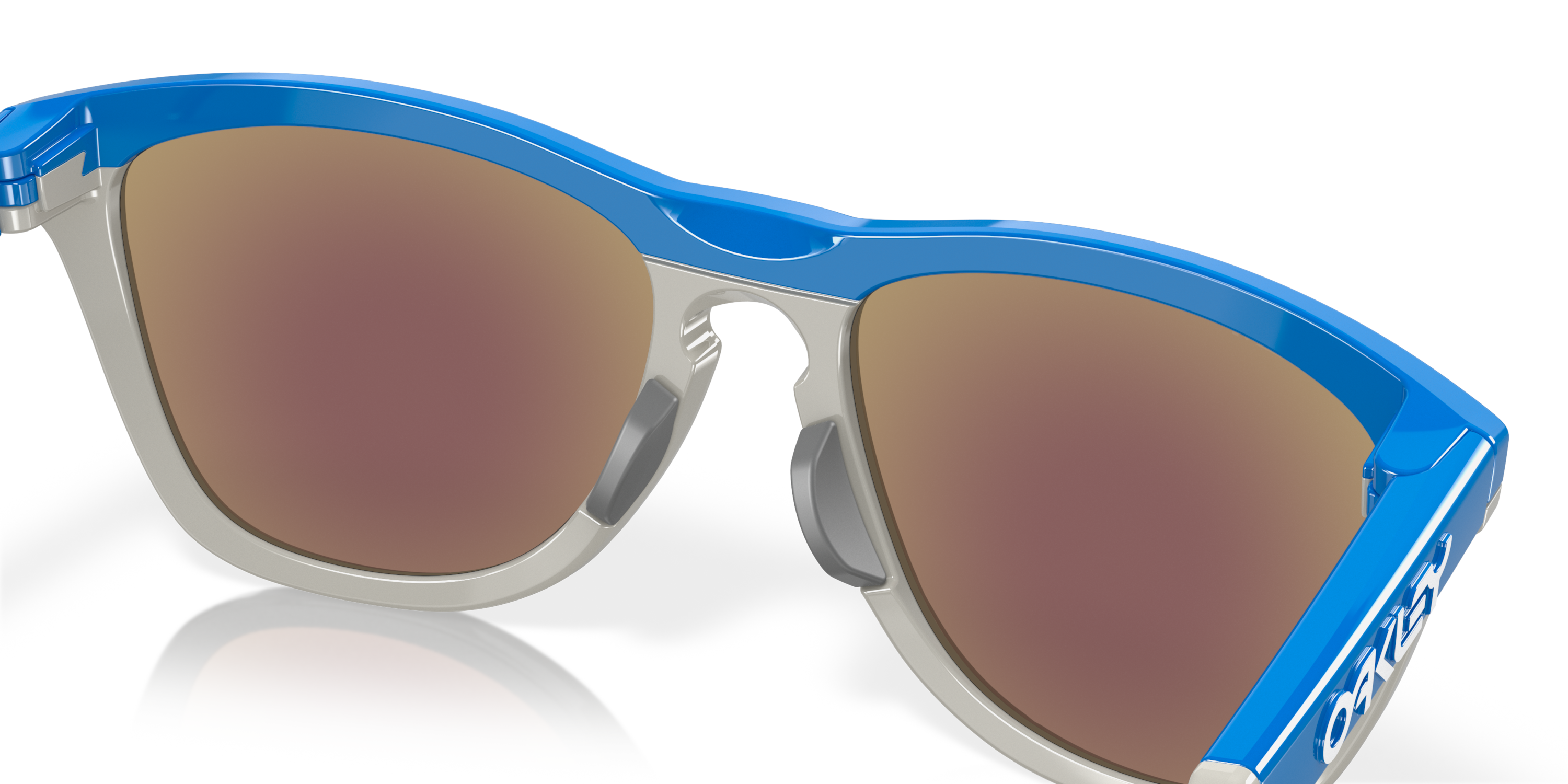 Oakley Frogskins™ Hybrid sunglasses are a nod to the '80s, blending classic Frogskins™ style with the Razor Blades' trigger stem design. These sunglasses are constructed from eco-friendly BiO-Matter™ and feature unique color breaks, Prizm™ Sapphire lenses to enhance visual clarity, and Unobtainium® nosepads for a secure, comfortable fit.