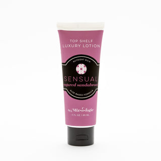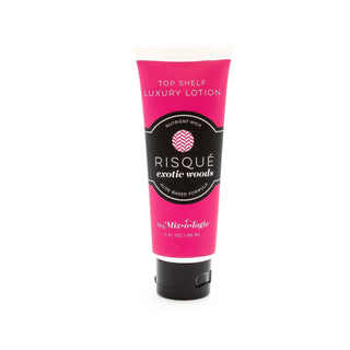 Indulge in the daring allure of Mixologie's Risqué Exotic Woods Top-Shelf Lotion. This aloe-based elixir, enriched with luxurious butters and oils, offers an intoxicating blend of white musk and sandalwood, complemented by the zest of bergamot and the warmth of vanilla. Its unique, gender-neutral fragrance invites a mysterious, sensual experience that tantalizes the senses, leaving a lasting impression of intrigue.