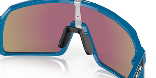 The Oakley Sutro sunglasses redefine the look of traditional cycling eyewear with their bold, Sky Blue frame and Prizm Sapphire lenses. Engineered for performance, these sunglasses provide enhanced color, contrast, and detail, making them ideal for both intense rides and casual wear. The lightweight O Matter™ frame offers durability and all-day comfort, while Unobtainium™ nosepads keep the glasses in place by increasing grip with perspiration.