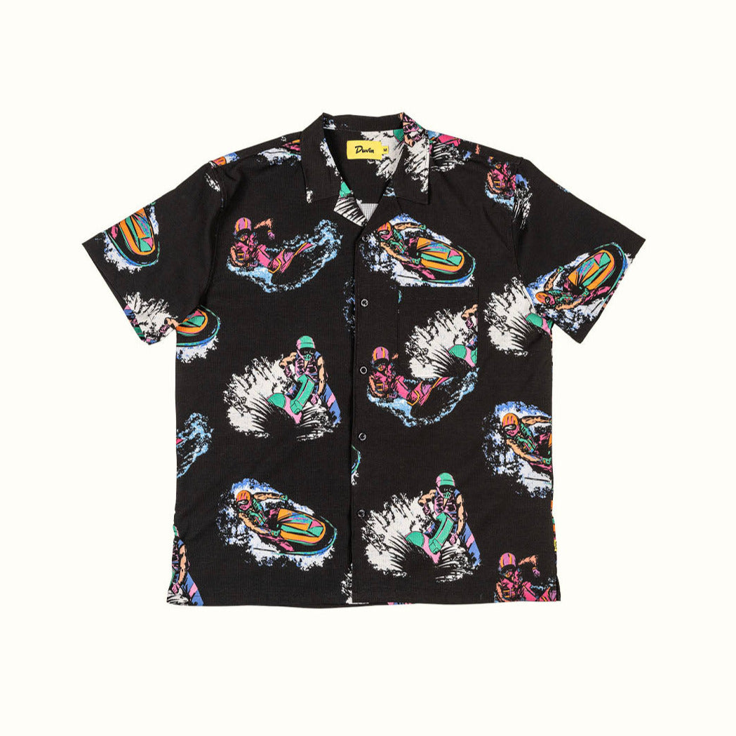 Elevate your wardrobe with the Ski Grand Prix Leisure Stretch Button-Up, the quintessential shirt for any afterparty. Crafted from a unique perforated performance stretch fabric, this short-sleeve cabana shirt blends unparalleled comfort with durable, anti-wrinkle, and anti-shrink features. Its classic camp collar and relaxed fit ensure you stand out in effortless style, while the front chest pocket adds a touch of practical elegance.
