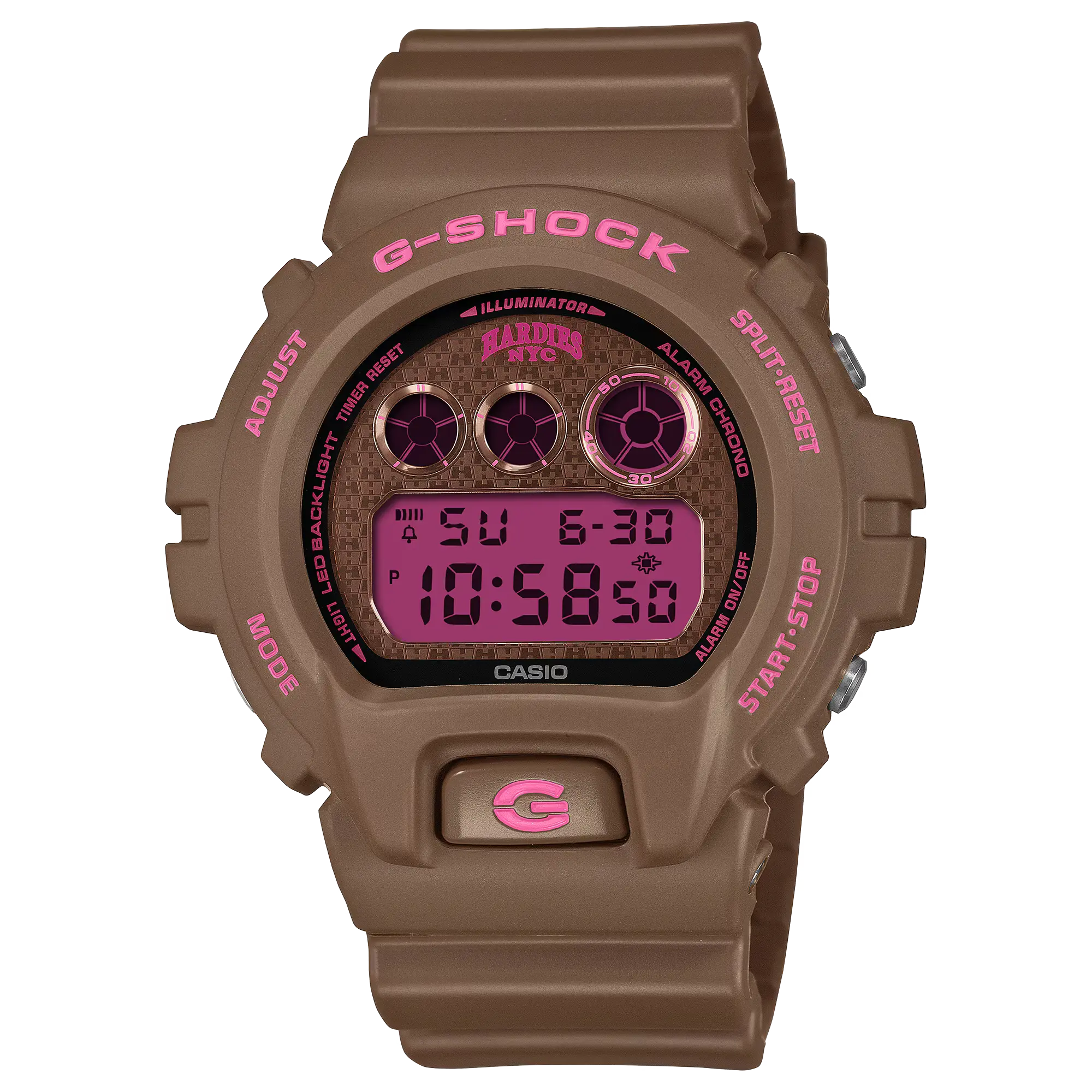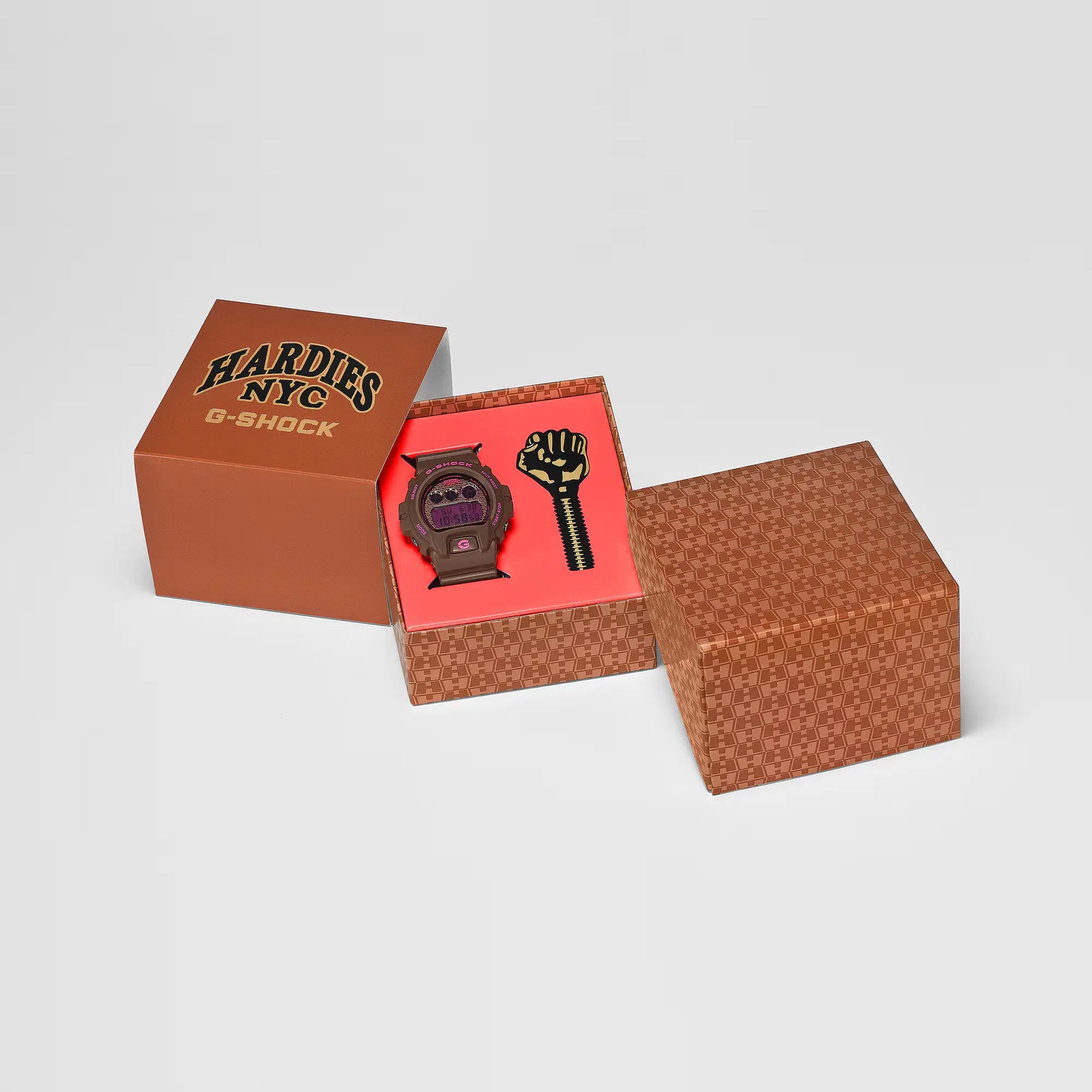 Built for impact — on the wrist and in the streets. This collaboration between G-SHOCK and Hardies NYC unites uncompromising durability with raw skate energy. Founded in 2015 by skaters Tyshawn Jones, Hardies NYC brings a bold character to the iconic DW6900, known for its triple graph and front button.
