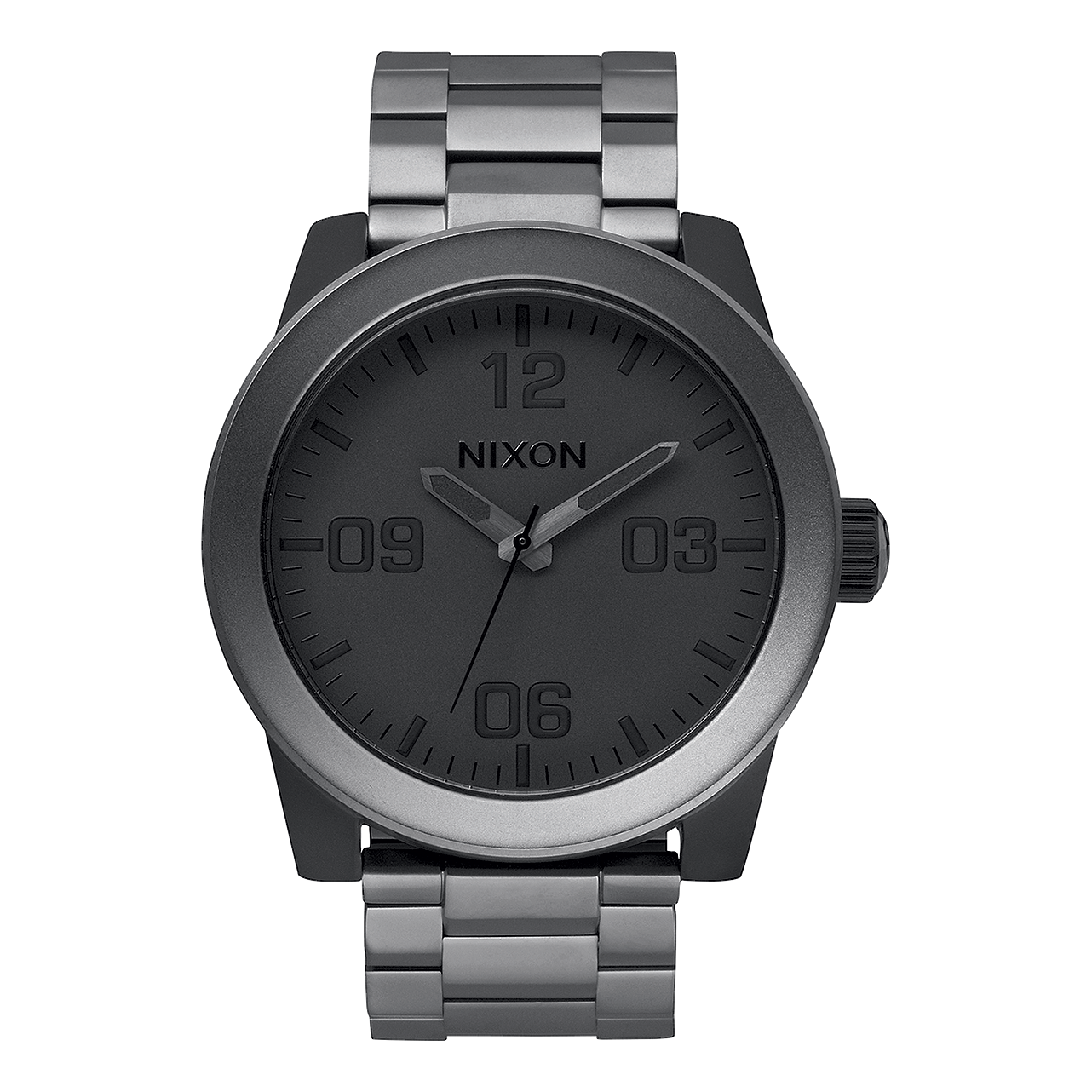 The Nixon Corporal SS Analog Watch combines military-inspired precision with rugged durability. A stainless steel bezel, recessed crystal, and faceted links ensure lasting performance, making this timepiece the perfect blend of form and function.